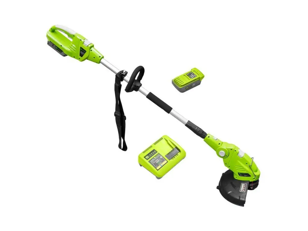 Акумуляторний тример працює тихіше, не виділяє вихлопів і не вимагає дозаправки. Ще він легко запускається і простий у використанні, що робить його ідеальним варіантом для жінок, літніх людей і людей з обмеженими фізичними можливостями.