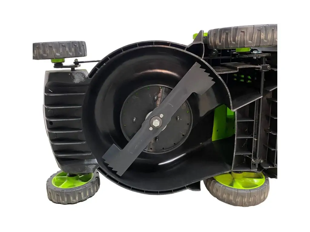 Більшість моделей мають невелику вагу і пластикові колеса з підшипниками, які легко котяться. Тому штовхати акумуляторну газонокосарку зовсім не складно.