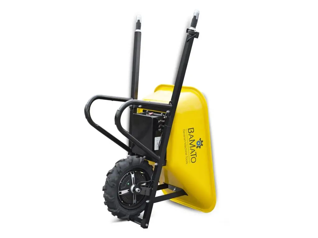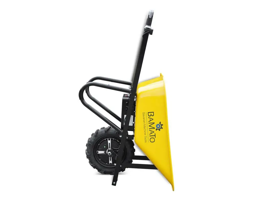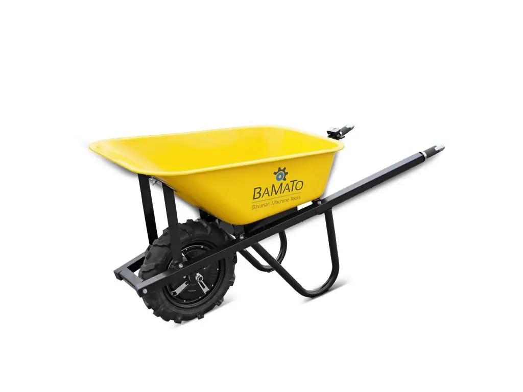 Акумуляторна тачка BAMATO MTR-150 - це надійний та ефективний інструмент для переміщення вантажів по приватних ділянках, невеликих фермерських господарствах і будівельних майданчиках. Витримує навантаження до 150 кг. Оснащена електродвигуном потужністю 500 Вт і свинцево-кислотним акумулятором ємністю 228 Вт-год, який при повному заряді забезпечує безперервну роботу до 8 годин.