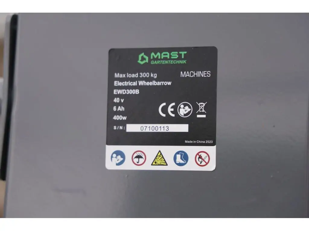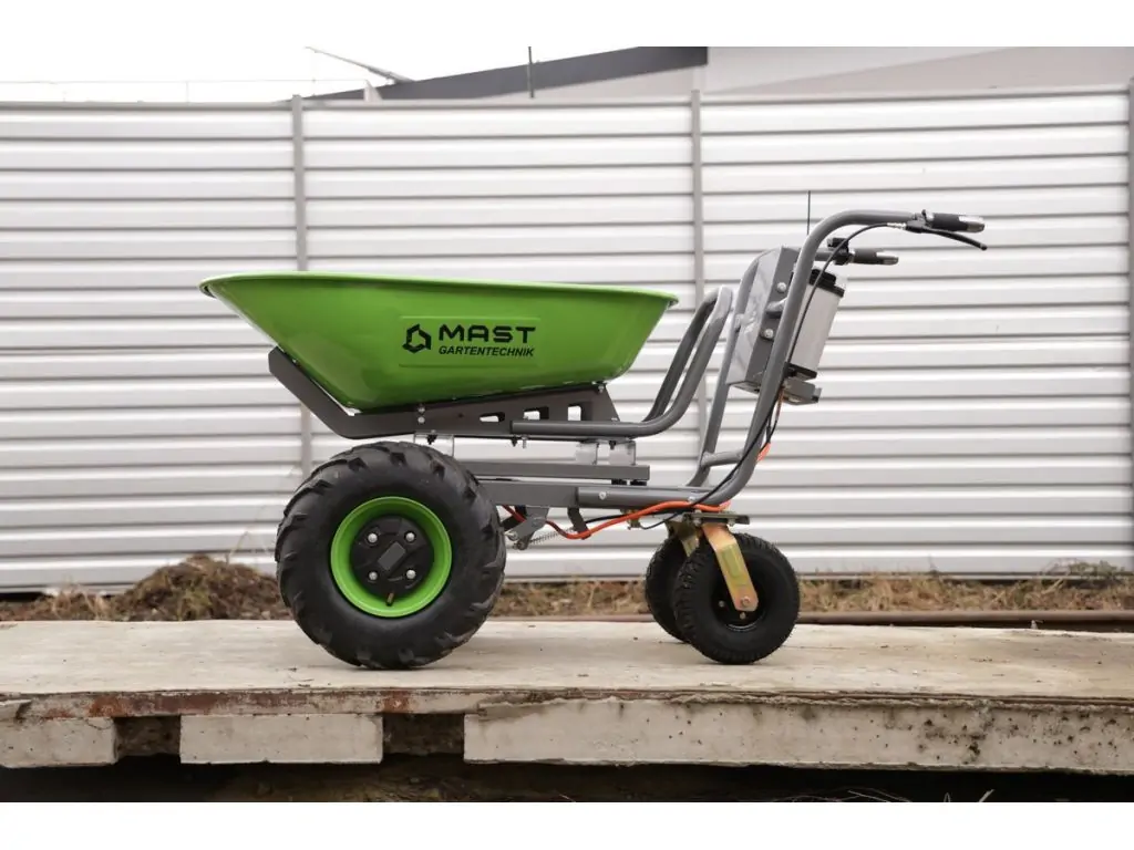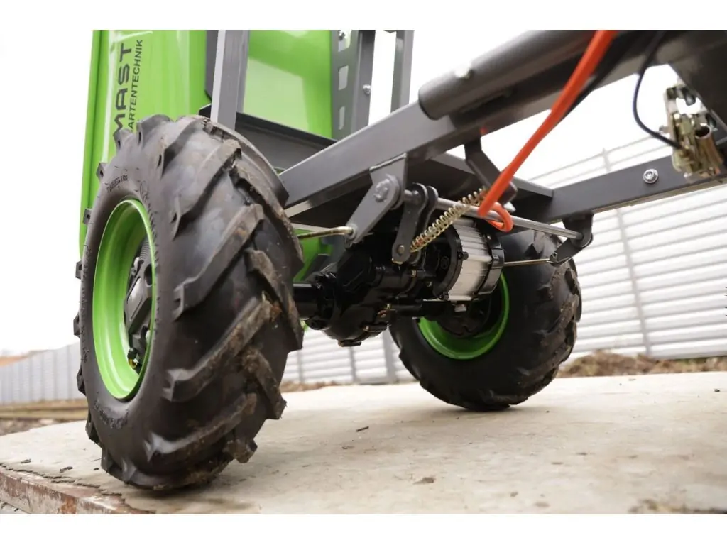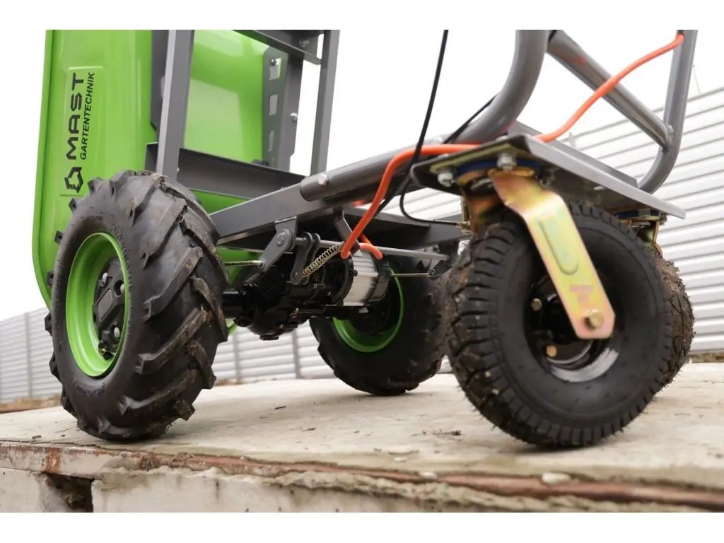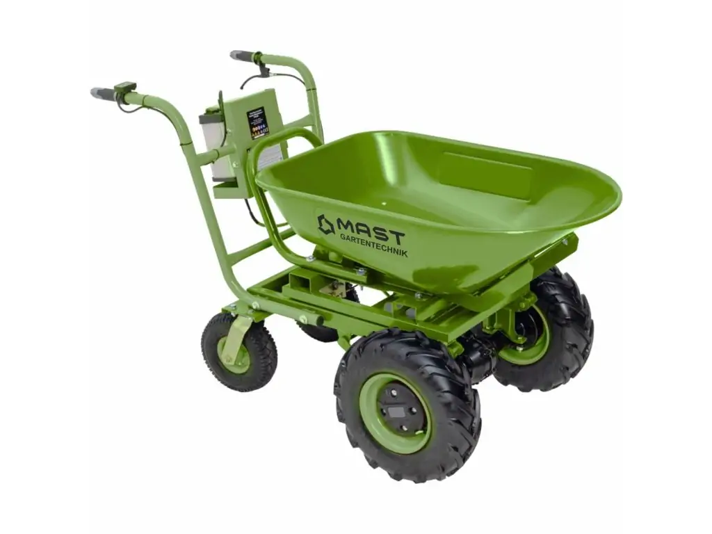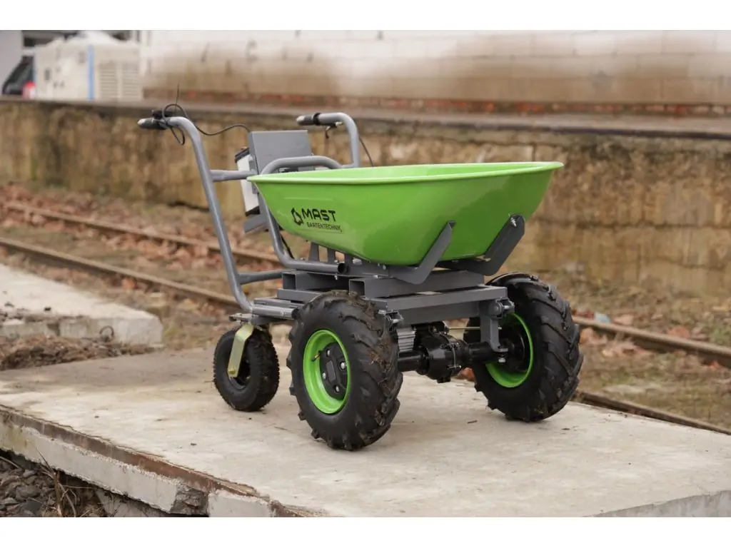 Акумуляторна тачка MAST EWD300B стане надійним і незамінним помічником у вашому господарстві, адже забезпечує легке транспортування сипучих матеріалів навколо будинку, на подвір’ї та в саду. Без проблем проїжджає по пересіченій місцевості та бездоріжжю. Конструкція тачки витримує вражаюче навантаження 300 кг, що у поєднанні з міцним 100-літровим коритом з порошковим покриттям дає змогу без зусиль перевозити великі об’єми піску, каміння, землі й інших матеріалів. Корито відкидається ручним зусиллям.