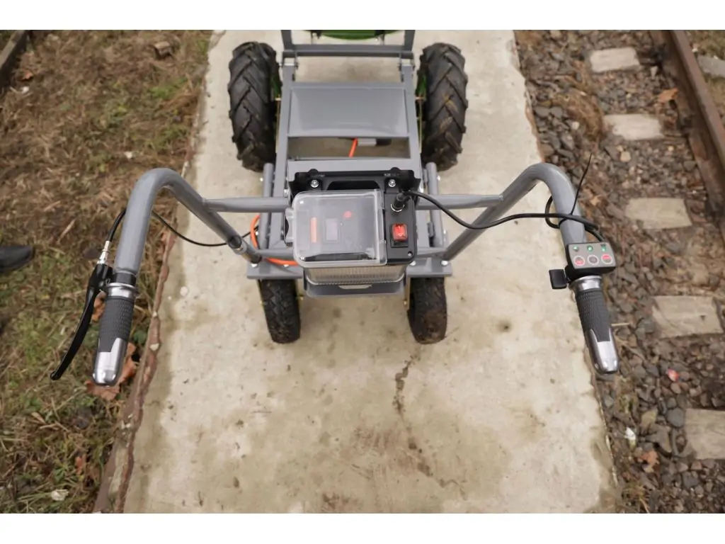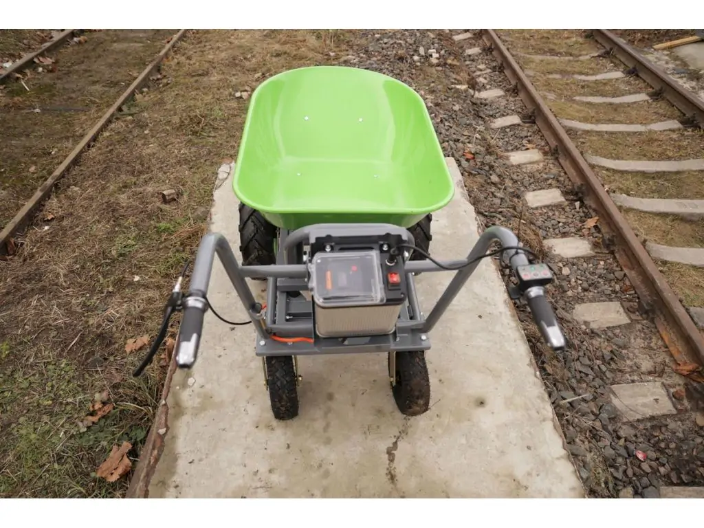 Здійснює рух вперед і назад. Два ведучі колеса забезпечують відмінну прохідність, а два опорних - запобігають перекиданню тачки і полегшують її рух. Всі колеса оснащені протекторами. Час роботи тачки при повному заряді акумулятора становить 5 годин, час заряджання - 3 години.