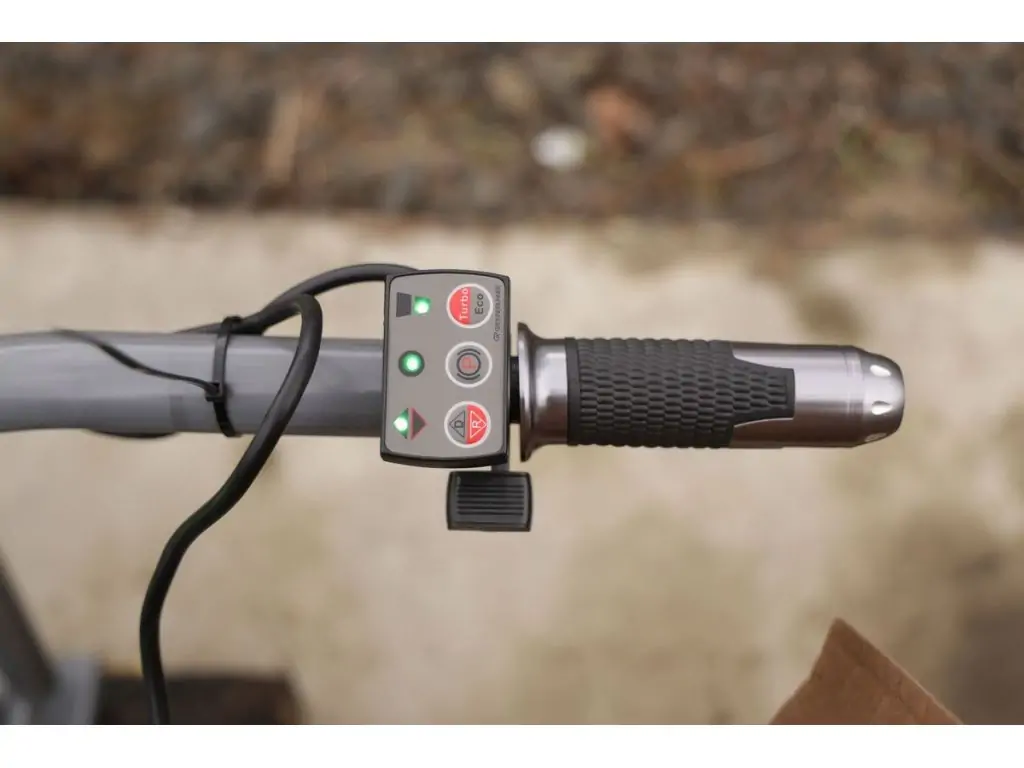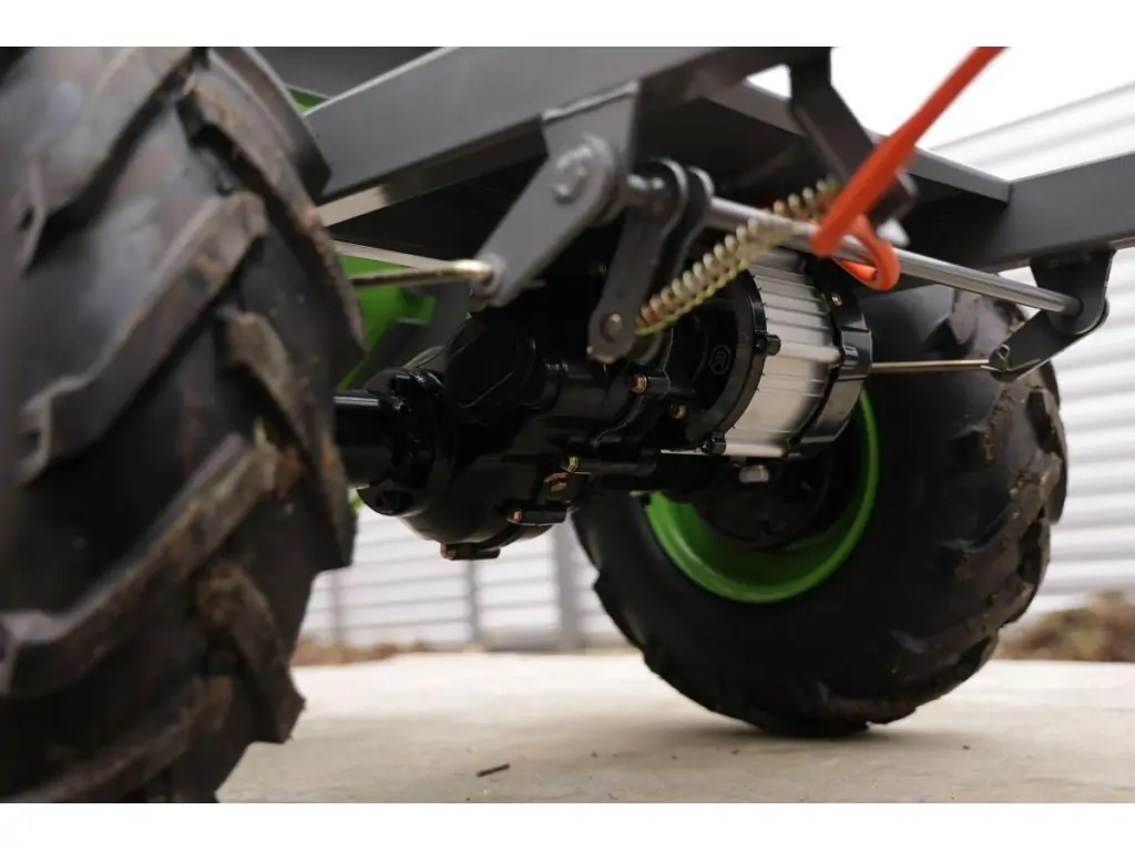 - Два великих ведучих колеса з протектором забезпечують відмінну прохідність по бездоріжжю