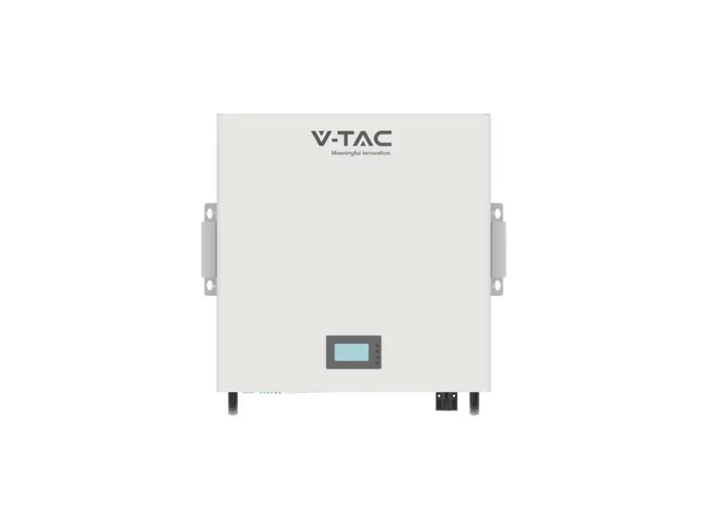 Накопичувач енергії V-TAC використовує літієву батарею з напругою 51,2 В та ємністю 100 Ач, призначену для фотоелектричних інверторів. Він здатний зберігати електроенергію до максимальної ємності 5,12 кВт·год. Продукт обладнаний повним кабелем і системою управління батареєю BMS. Є можливість розширення кількості накопичувачів до 16 штук.