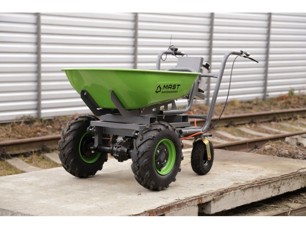 Акумуляторна тачка MAST EWD300B стане надійним і незамінним помічником у вашому господарстві, адже забезпечує легке транспортування сипучих матеріалів навколо будинку, на подвір’ї та в саду. Без проблем проїжджає по пересіченій місцевості та бездоріжжю. Конструкція тачки витримує вражаюче навантаження 300 кг, що у поєднанні з міцним 100-літровим коритом з порошковим покриттям дає змогу без зусиль перевозити великі об’єми піску, каміння, землі й інших матеріалів. Корито відкидається ручним зусиллям.