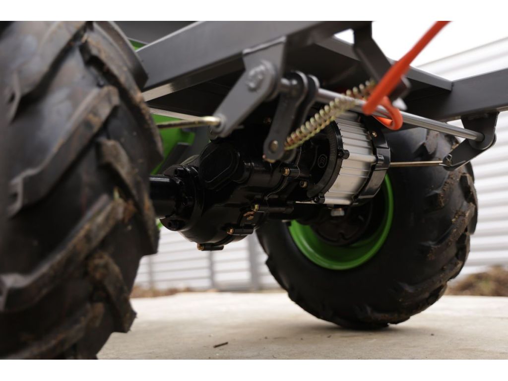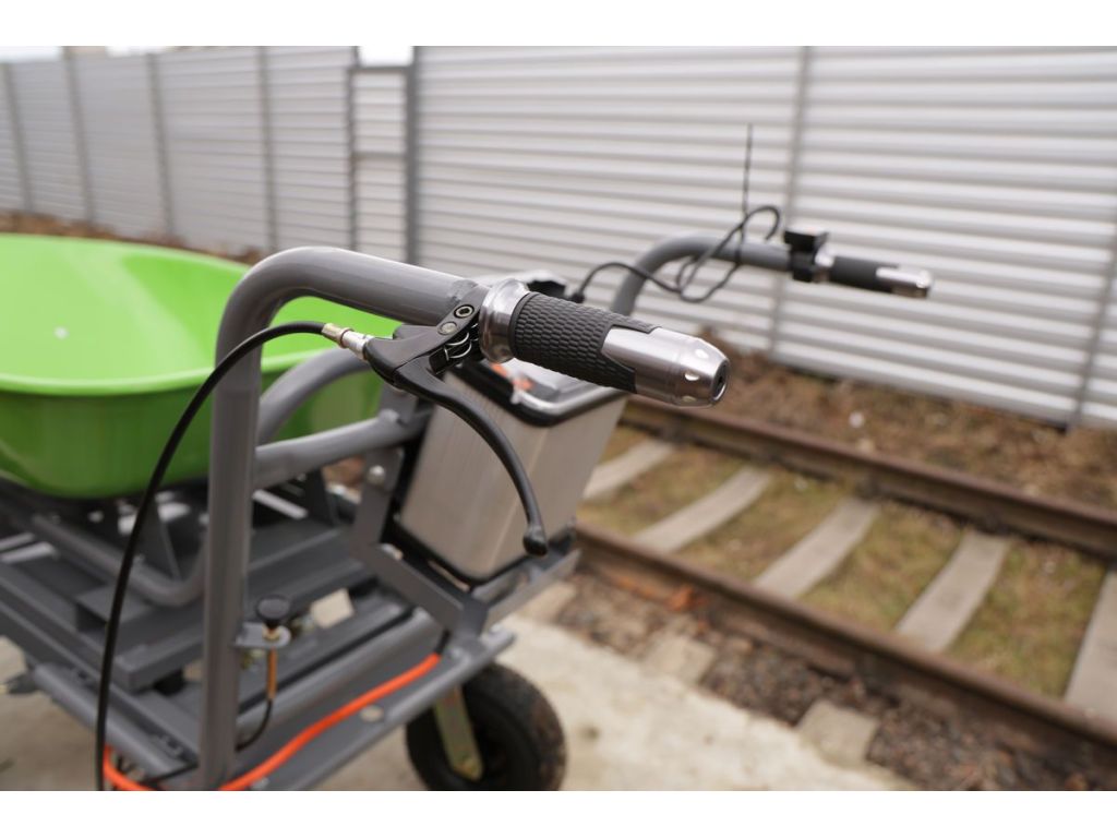 Здійснює рух вперед і назад. Два ведучі колеса забезпечують відмінну прохідність, а два опорних - запобігають перекиданню тачки і полегшують її рух. Всі колеса оснащені протекторами. Час роботи тачки при повному заряді акумулятора становить 5 годин, час заряджання - 3 години.