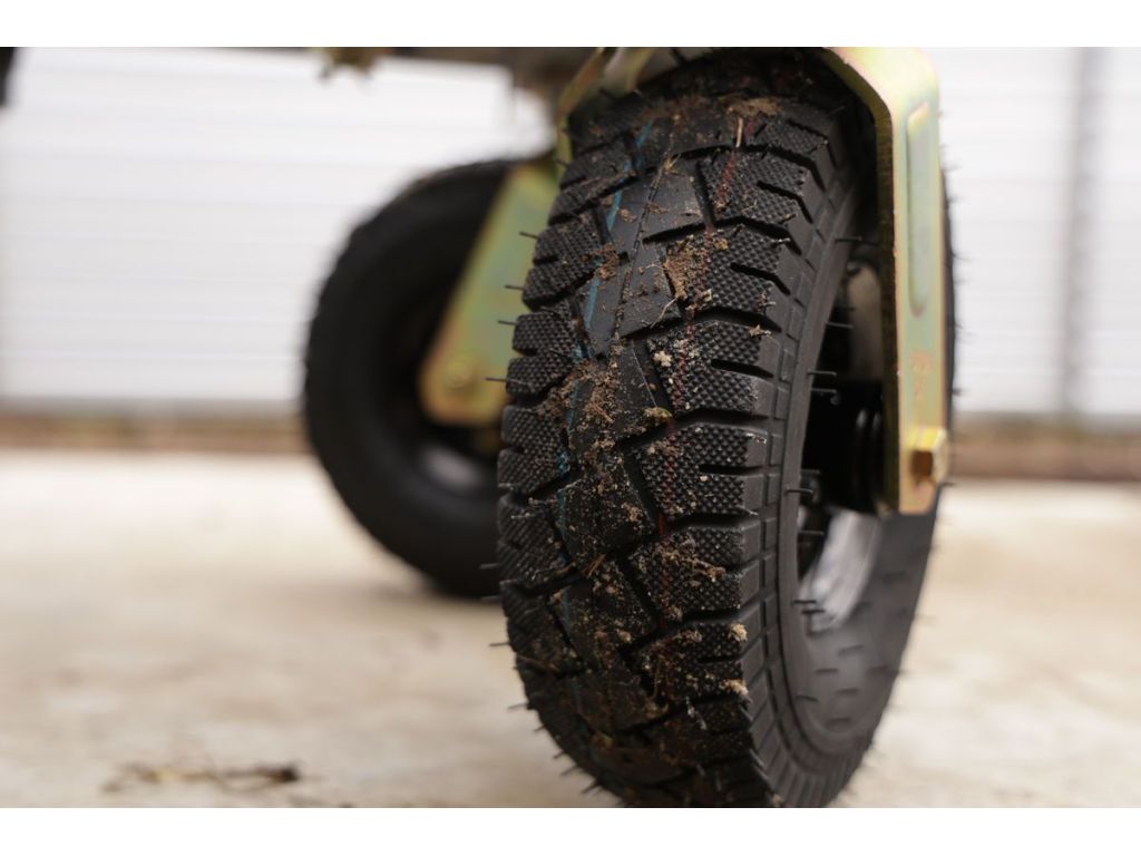 - Два великих ведучих колеса з протектором забезпечують відмінну прохідність по бездоріжжю