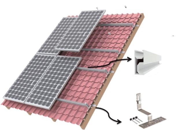 В комплекті поставки йде кріплення сонячних панелей на скатний дах з алюмінієвого профіля