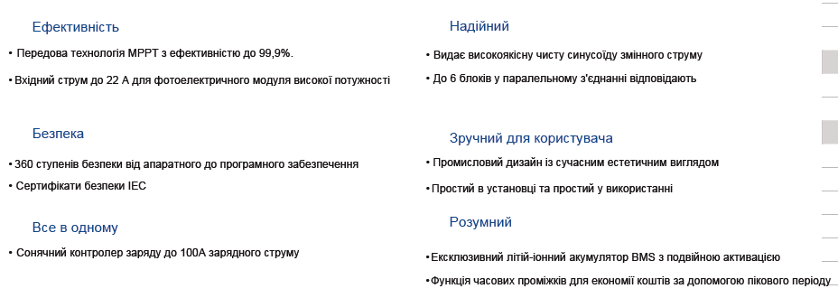 • Акумуляторна батарея: 3.2V 50AH, Prismatic, LiFePo4