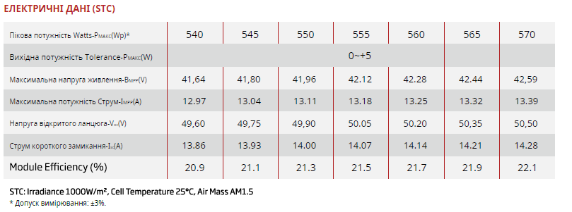 • Панель із напіврозрізом потужність 560 Вт