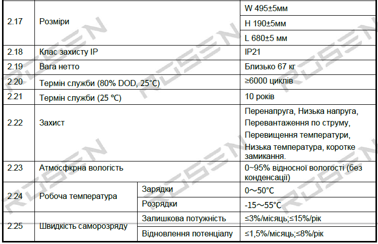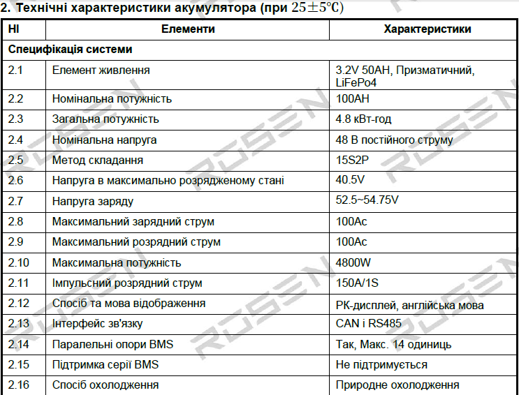 • Номінальна потужність: 100AH/4,8 кВт/год