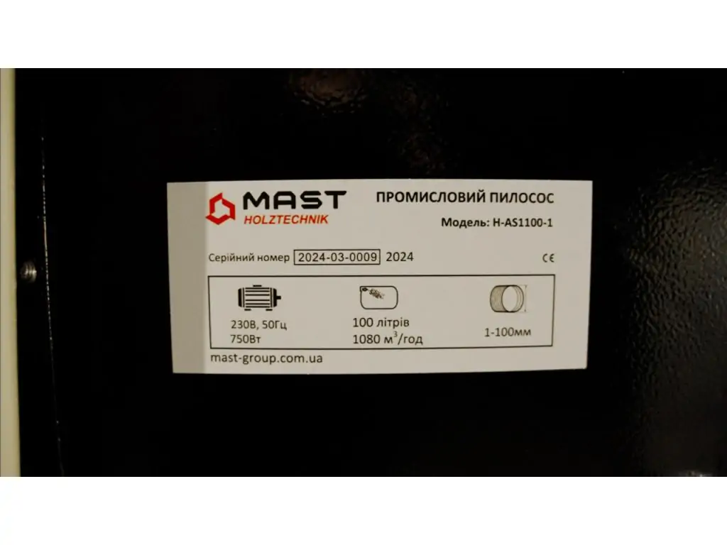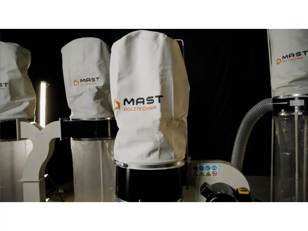 Аспірація MAST Holztechnik H-AS1100 поставляється з поліестеровим фільтром і мішком для відходів на 100 л.