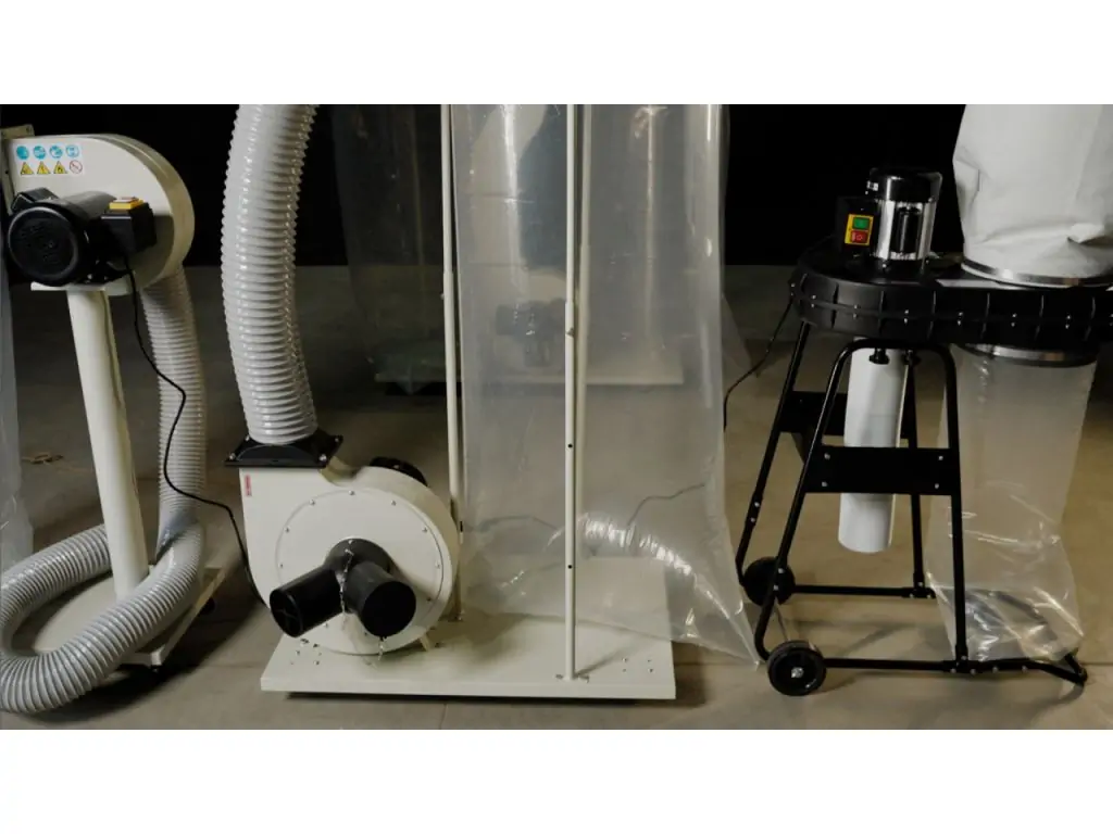 Двигун потужністю 1,5 кВт забезпечує продуктивність 2480 м3/год, завдяки чому аспірація відмінно справляється як з дрібними, так і з крупними фракціями відходів. Розміщений у верхній частині поліестеровий фільтр відповідає всім європейським стандартам.