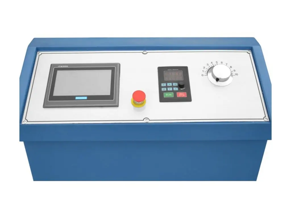 Параметри різання, такі як кількість різів, розмір подачі матеріалу, швидкість ріжучої стрічки, швидкість опускання консолі встановлюються на панелі керування. Автоматична зупинка верстата відбувається у разі завершення серії різання, поломки полотна або іншої несправності, виявленої системою управління верстата.