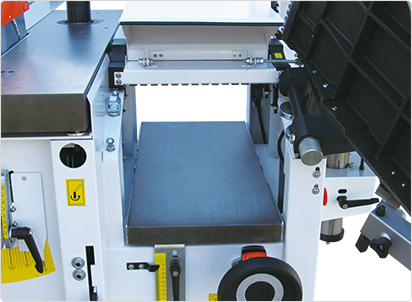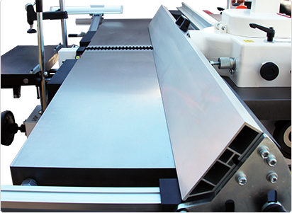 ФУГУВАЛЬНИЙ ВУЗОЛ Литі фугувальні столи є надійною базою для обробки. Нахил напрямної лінійки дозволяє знімати фаску. |