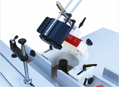 - Регульований упор із двома лінійками та мікрометричним налаштуванням.