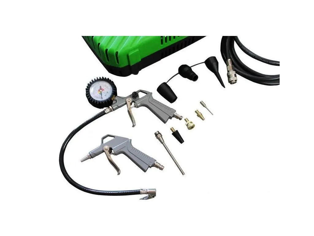 Цей компресор поставляється з набором аксесуарів для різних потреб. Базова комплектація обладнання така: