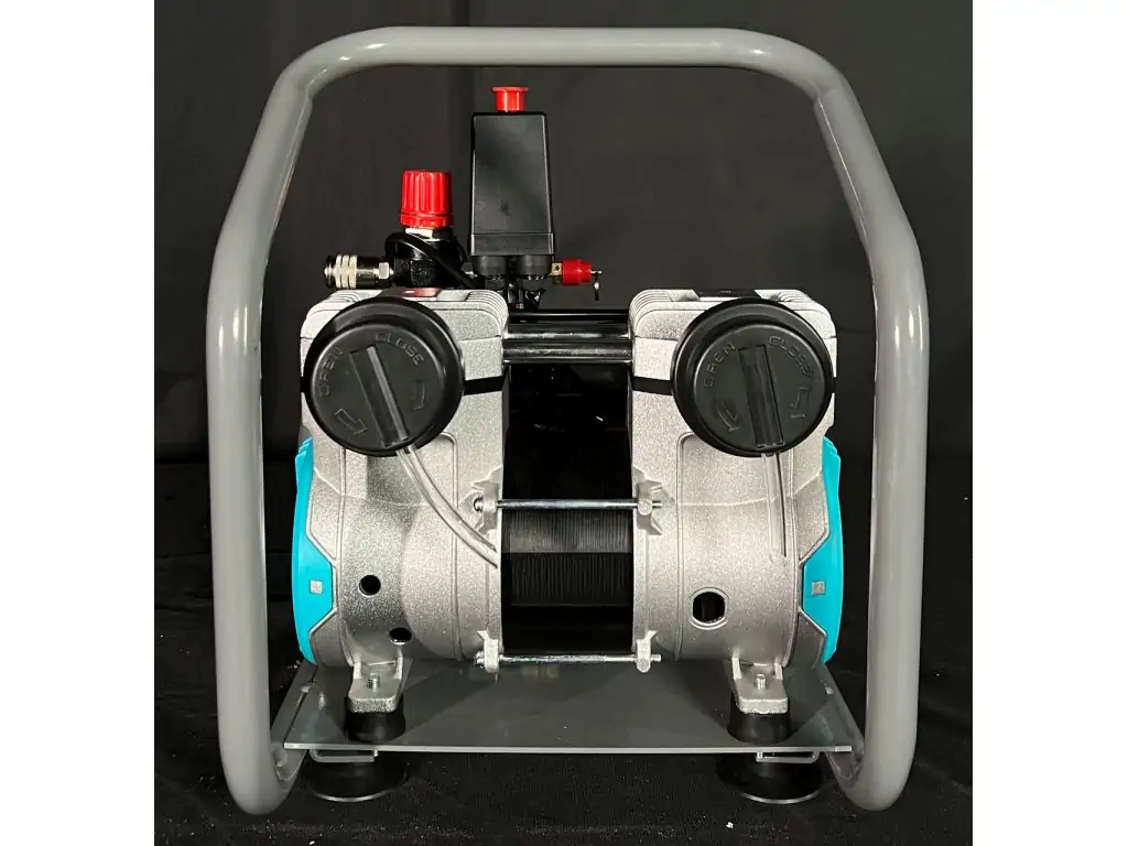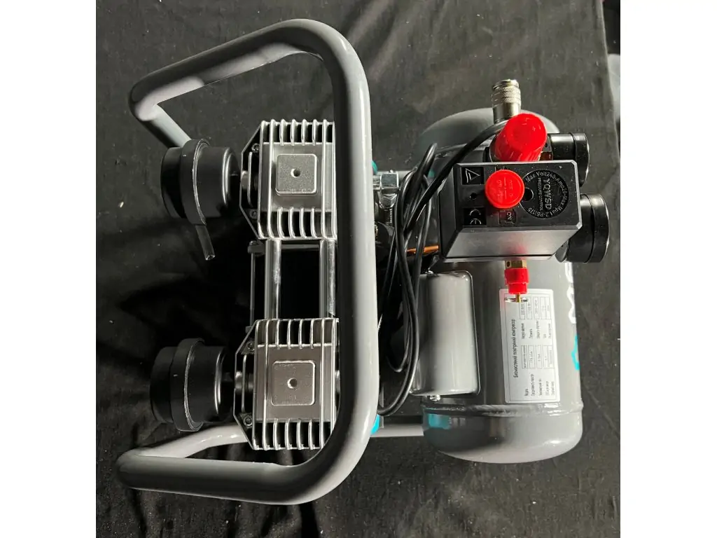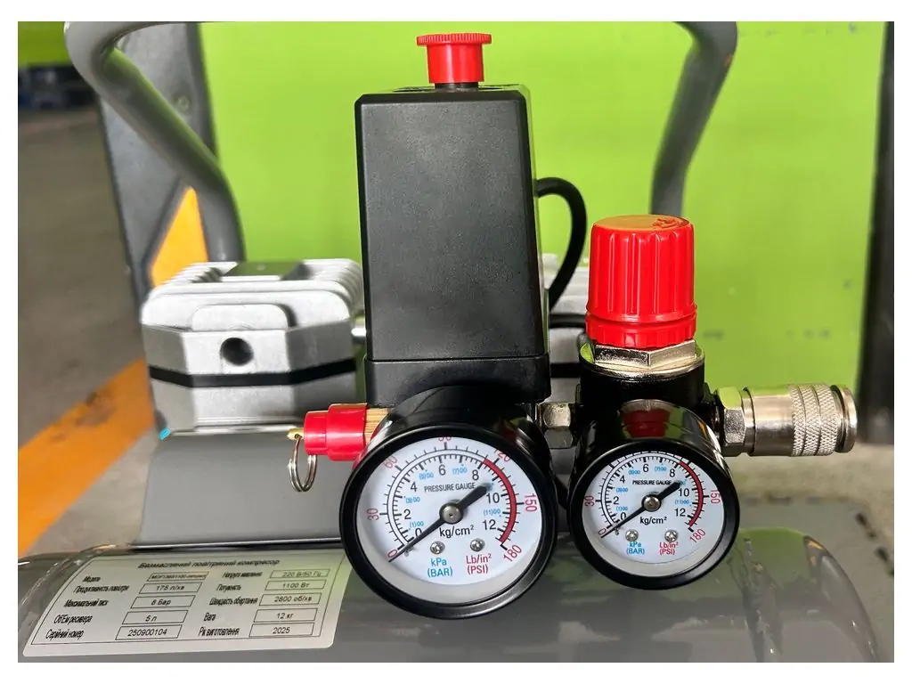 Двигун потужністю 800 Вт/ 1,1 кВт має мідну обмотку і тепловий захист, що робить його стійким до перегріву. Прямий привід зменшує втрати потужності та робить конструкцію легшою і компактнішою. Редуктор тиску і 2 манометри (показують тиск в ресивері і на виході з редуктора) дозволяють коригувати і контролювати поточний тиск. Гумові ніжки зменшують шум та вібрації, а посилена верхня ручка дає змогу легко переміщати цей портативний безмасляний компресор по робочій зоні.