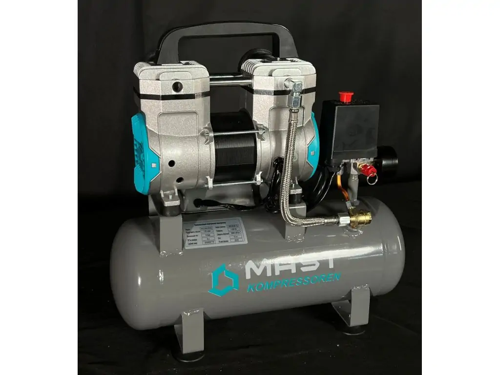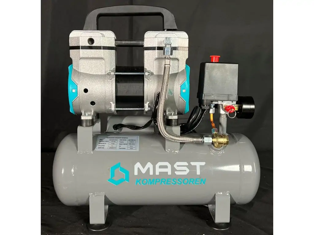 Безмасляний поршневий компресор Mast MOF1390/1100-9L розроблений для завдань, які вимагають стисненого повітря високої якості і без домішок мастила: стоматологічних і лабораторних робіт, локального фарбування, аерографії, продування електроніки тощо. Продуктивність 175 л/хв і ресивер об’ємом 9 л оптимальні для коротких інтенсивних робочих циклів. Робочий тиск 8 Бар універсальний для більшості пневматичних систем.