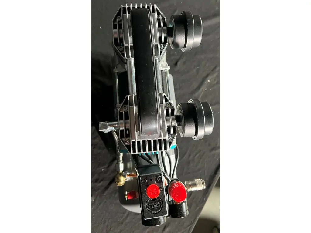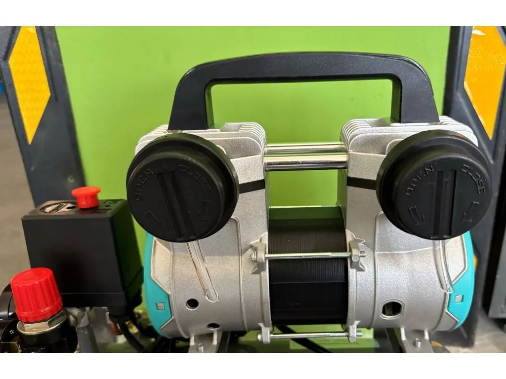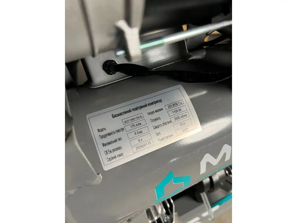 Подвійний поршневий блок забезпечує рівномірну подачу повітря і стабільний тиск у ресивері. Поршневе кільце виготовлене з армованого тефлону (PTFE), має низький коефіцієнт тертя і забезпечує ідеальну герметичність. Двигун з мідною обмоткою потужністю 800 Вт/ 1,1 кВт захищений від перегріву і перевантаження. Прямий привід мінімізує втрати потужності і робить цей компресор без масла більш компактним і легким.