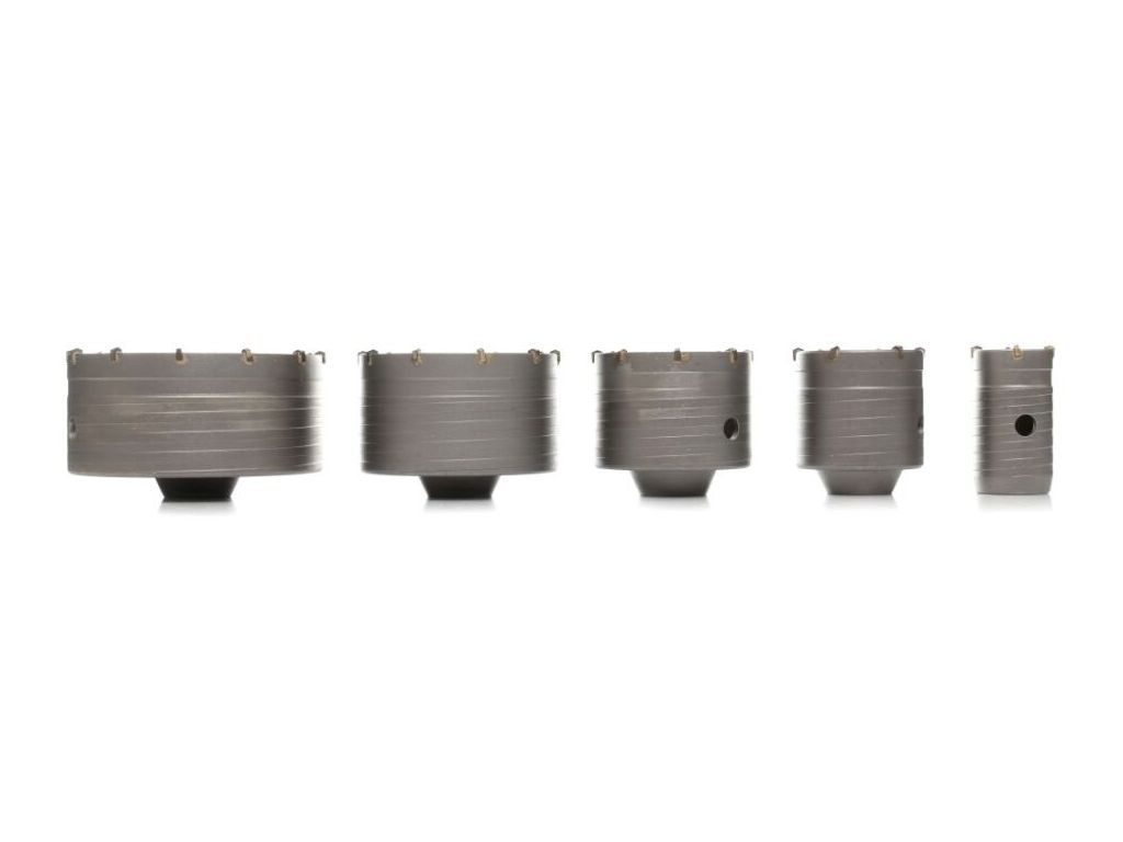 Свердла мають зубчастий обід із твердого сплаву HM. Направляюче свердло також має твердосплавну пластину. Ця коронка в основному використовується для вирізання отворів для монтажних коробок, розеток, кабельних джгутів, труб і багато чого іншого. У всіх типах будівельних матеріалів, тобто бетоні, цеглі, штукатурці, пустотілих блоках, гіпсокартоні, гіпсоцементних плитах і багатьох інших.