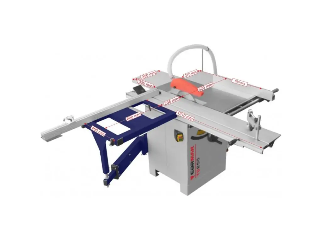 Двигун потужністю 2,2 кВт і швидкість обертання пильного диска 4000 об/хв забезпечують ефективну роботу з твердими породами деревини. Діаметр ріжучого диска 254 мм дозволяє здійснювати пропил глибиною до 80 мм, а нахил диска під кутом до 90° дає змогу виконувати скоси та фаски. Максимальна ширина різу - 1250 мм, довжина - 1300 мм. Робочий стіл виготовлений з міцного чавуну і має розширення для роботи з габаритними заготовками.