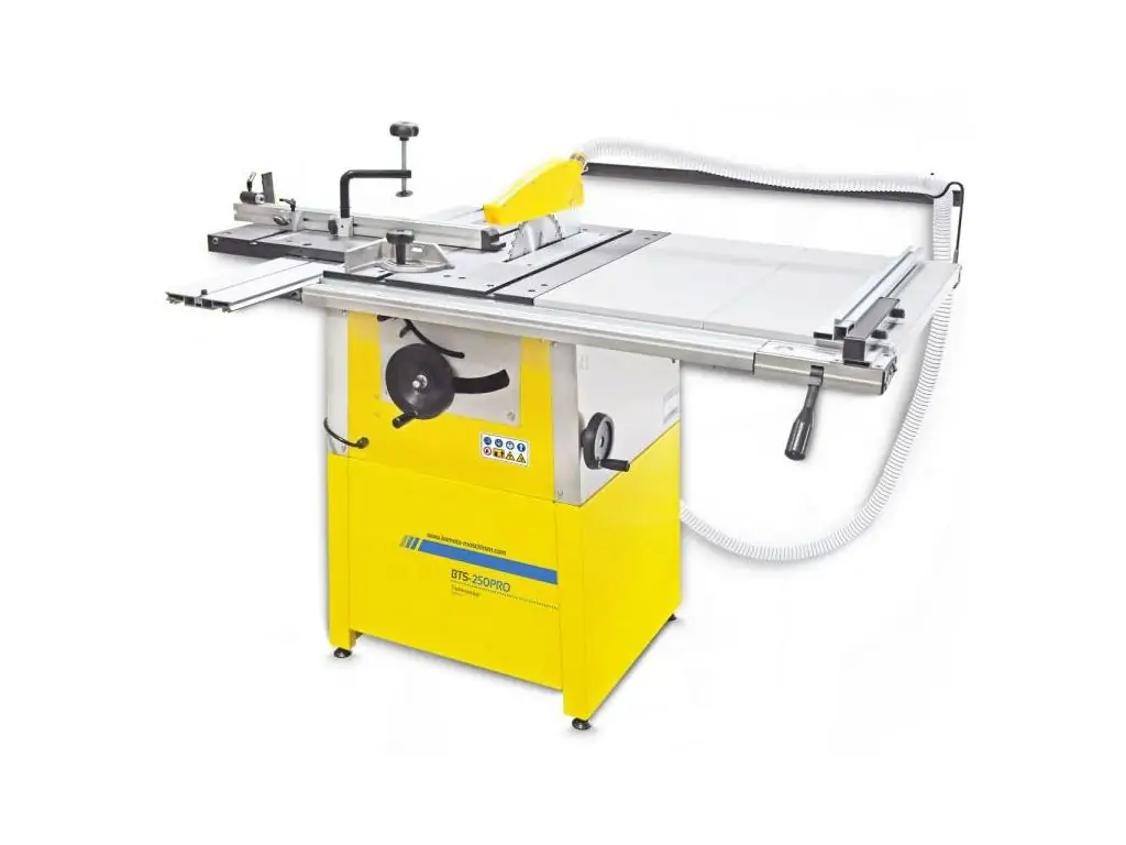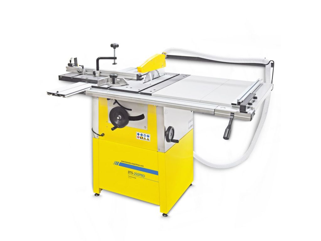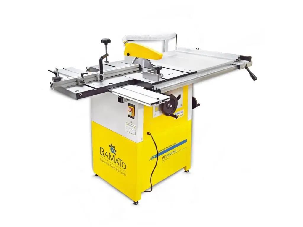 Циркулярна пила BAMATO BTS-250PRO (230V) - це пила відмінної якості. У поєднанні з міцним чавунним столом це забезпечує ідеальний результат різання. Для ідеальної зручності використання пильний диск можна регулювати по висоті або нахилу до 45° за допомогою махових коліс і засувки . Розсувний стіл також виготовлений як суцільний чавунний стіл і має, серед іншого, регульовану по куту опору з пристроєм для утримування.