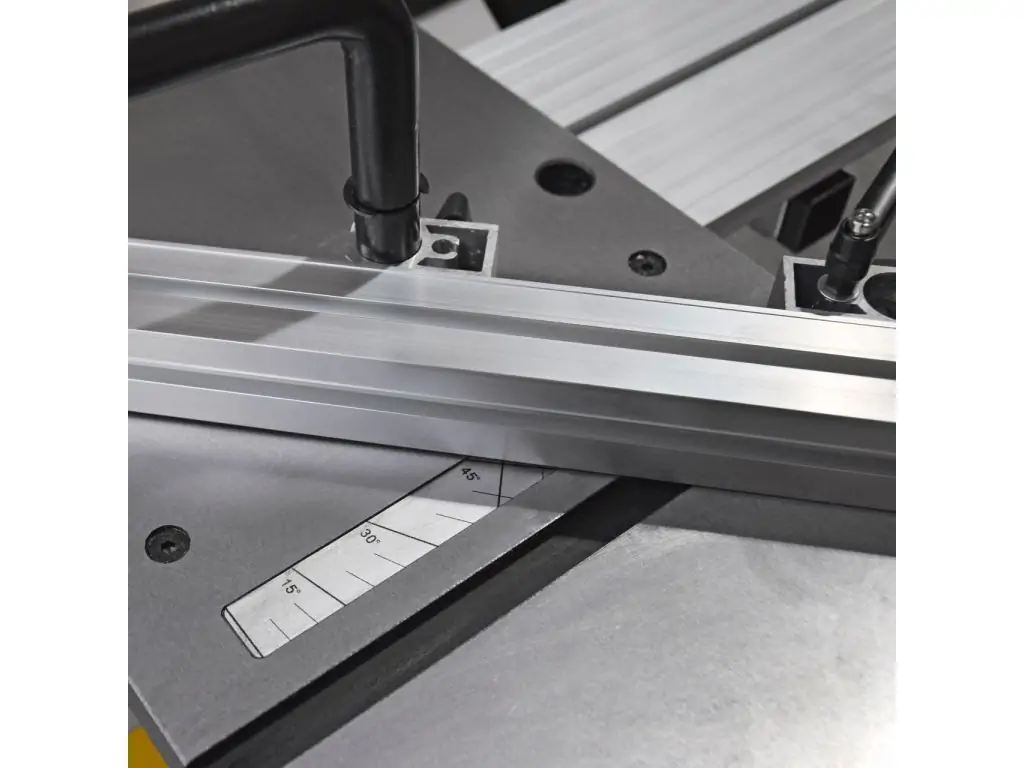 - Розсувний стіл з регульованою по куту опорною рейкою з притиском