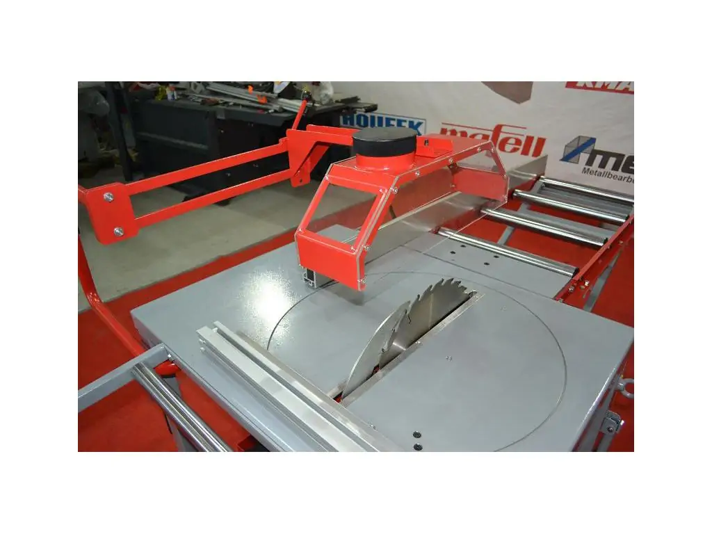 - Простий в експлуатації пильний блок з поворотним столом 90° і одночасно регульованим пільним диском (до 45°) для виконання різних операцій різання (поздовжній рез, торцювальний рез, косою рез, комбінований рез і т. д.)
