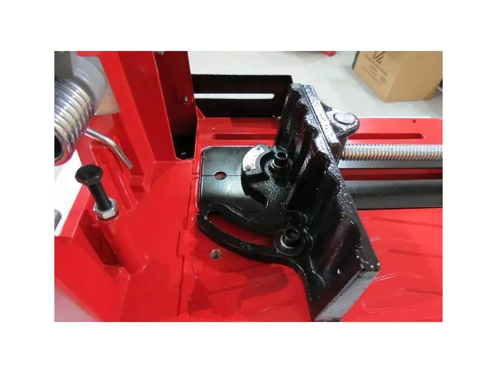 Поворотні лещата зі швидким регулюванням надійно фіксують заготовку і дозволяють різати під кутом до 45°