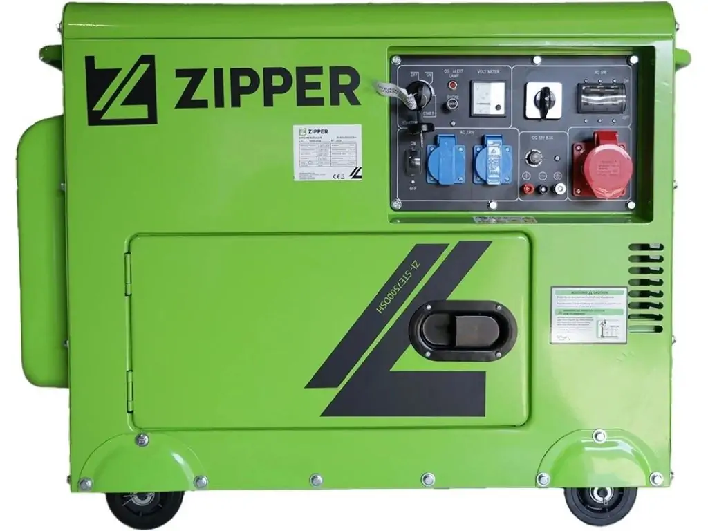 Дизельний генератор Zipper ZI-STE7500DSH використовується для аварійного живлення електроприладів у приватних будинках під час зникнення основного джерела електроенергії. Продукує 2 типи вихідної напруги - 230 В і 400 В. Оснащений 2 розетками (одно- і трифазною), що значно збільшує можливості його використання. Номінальної потужності 3 кВт при 230 В і 4,2 кВт при 400 В достатньо для забезпечення стабільної роботи основного побутового обладнання. Може безперервно працювати до 6 годин. Економно споживає паливо.