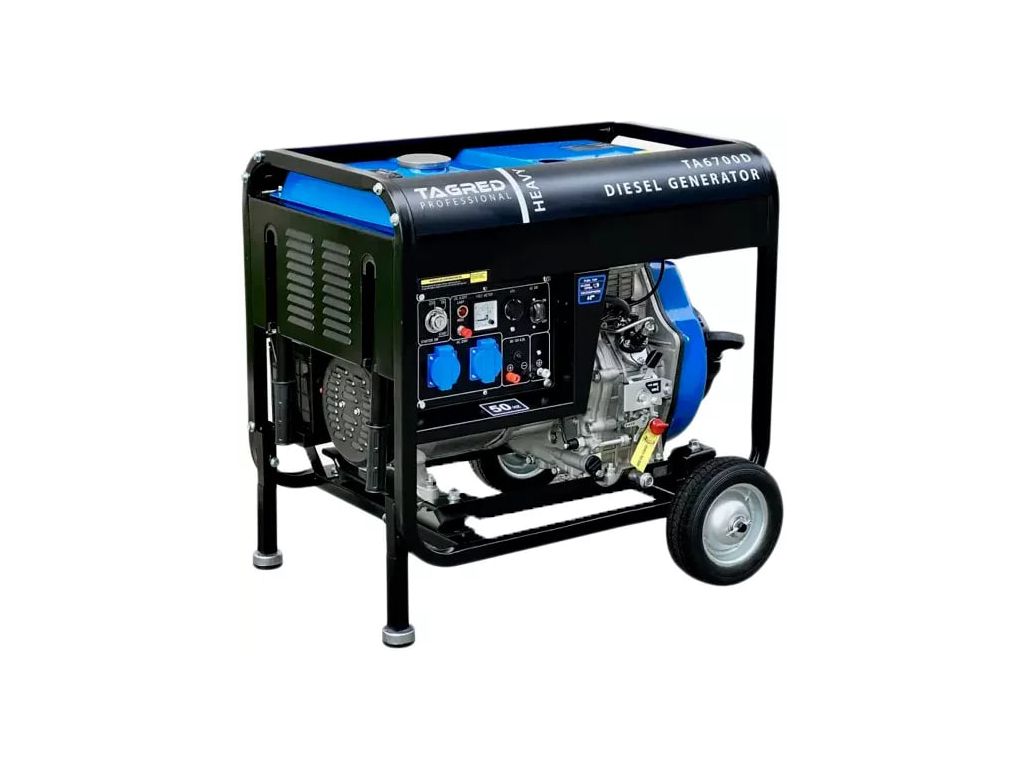 Дизельний генератор TAGRED TA6700D - це надійне джерело для резервного живлення однофазних приладів як у приватних будинках, так і в установах різного профілю. Номінальна потужність 6,2 кВт дозволяє заживити широкий спектр обладнання, а витривалий чотиритактний двигун з повітряним охолодженням забезпечує до 6 годин безперервної стабільної роботи. Для легкого запуску у будь-яких погодних умовах є електростартер.