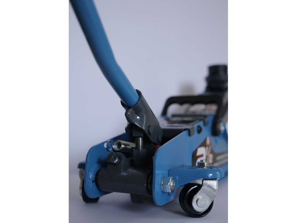 Домкрат поставляється з 2 гумовими накладками для захисту порогів автомобіля і збільшення висоти підйому. Максимальна висота підйому без накладки - 385 мм, з накладкою - 410 мм. Поворотні колеса з кульковими підшипниками та ручка з антиковзаючим покриттям Soft Touch довжиною 500 мм дозволяють швидко і точно позиціонувати домкрат під автомобілем. Простий в експлуатації та надійний у роботі, цей підкатний гідравлічний домкрат буде вигідним придбанням як для СТО чи автомайстерні, так і для власного гаража.