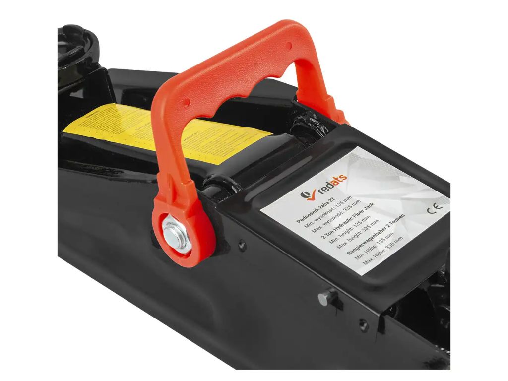 Підкатний гідравлічний домкрат 2 т REDATS LS-320 з вантажопідйомністю 2 тонни і робочим діапазоном 115-300 мм відмінно підходить для роботи з різними моделями легкових автомобілів. Конструкція з товстої сталі надзвичайно міцна та надійна у роботі, що гарантує довготривалу та безпечну експлуатацію. Компактний розмір і зручна ручка з прогумованою точкою захвату дозволяють швидко позиціонувати домкрат під автомобілем, а великі металеві ролики забезпечують надійний контроль підйому навіть на нерівних поверхнях.