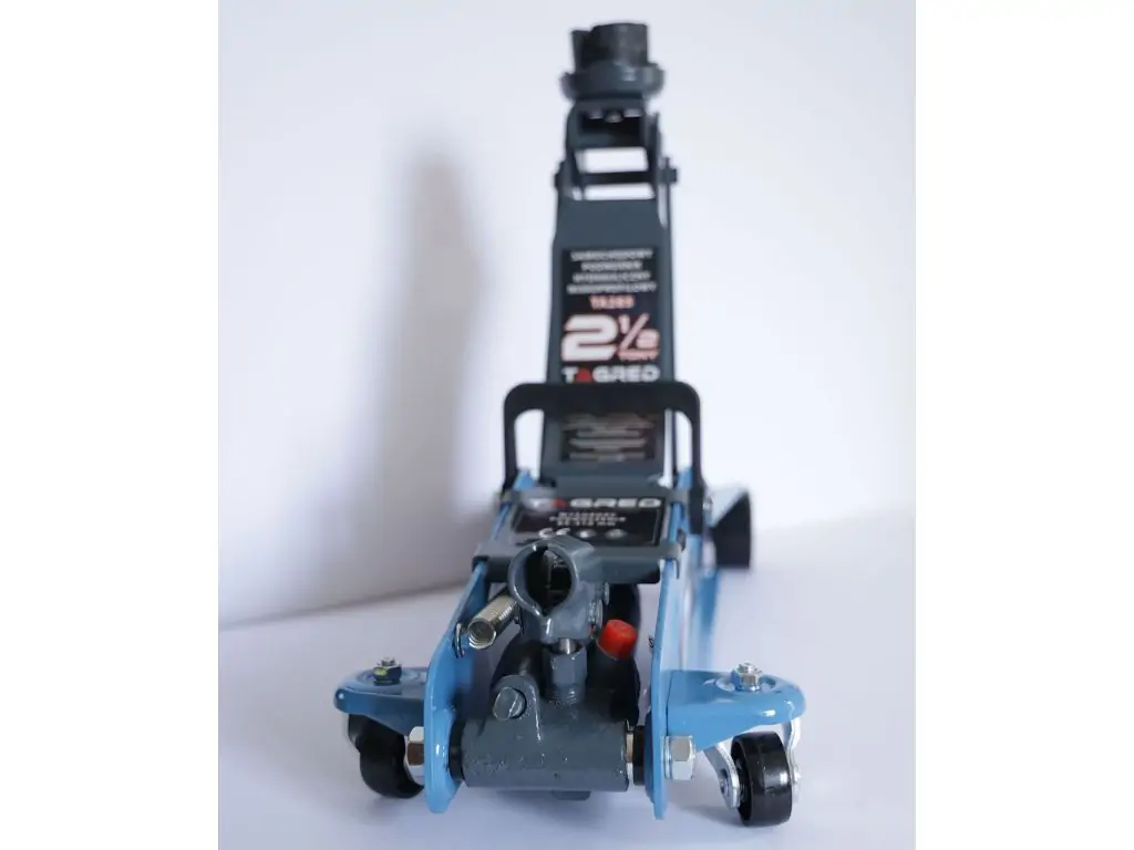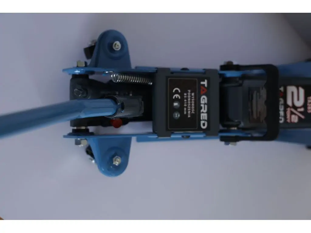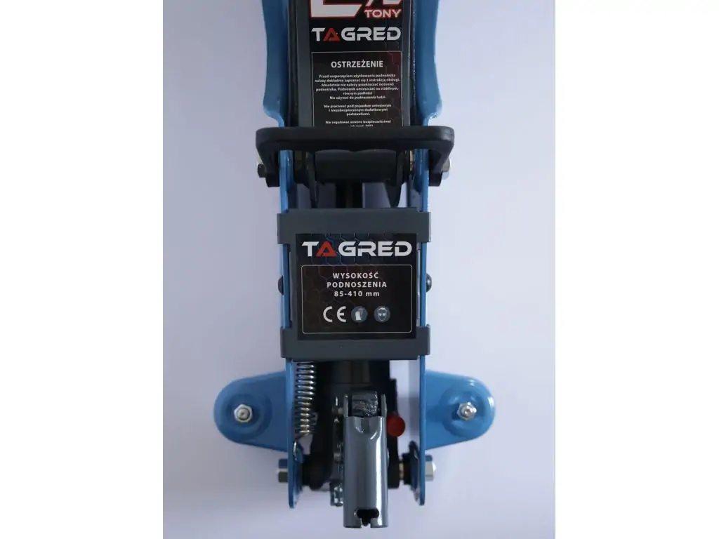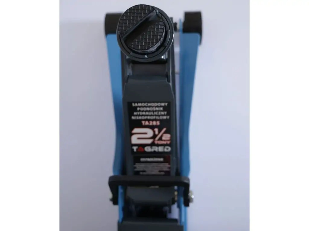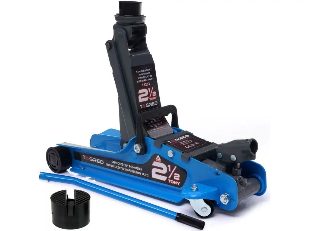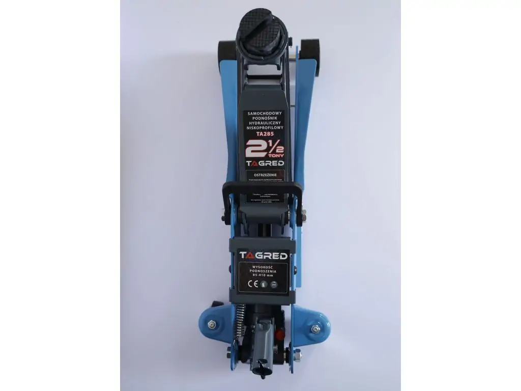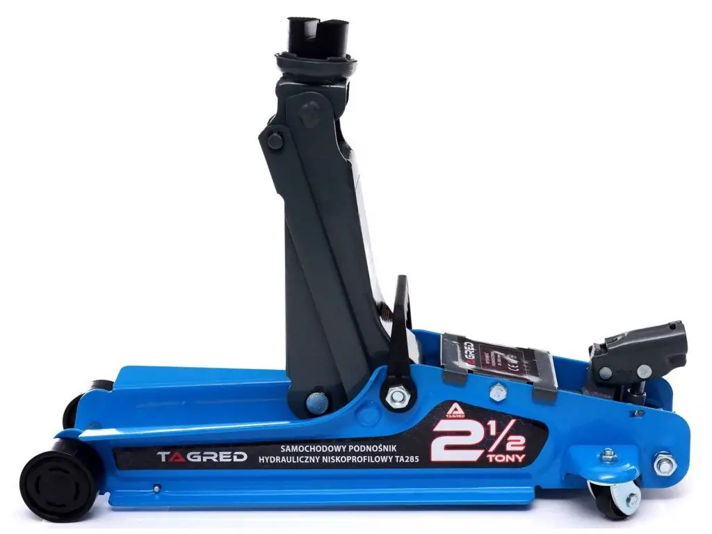 Гідравлічний автомобільний домкрат TAGRED TA285 з вантажопідйомністю 2,5 тонни і висотою підхоплення 85 мм (без гумової накладки) дозволяє обслуговувати переважну більшість легкових автомобілів, у тому числі авто з низьким кліренсом. Міцна, жорстка конструкція з прокатних сталевих листів, які з’єднуються в спеціальні профілі, гарантує надійність і безвідмовність пристрою. Гідравлічний циліндр забезпечує плавні та контрольовані підйом-опускання.