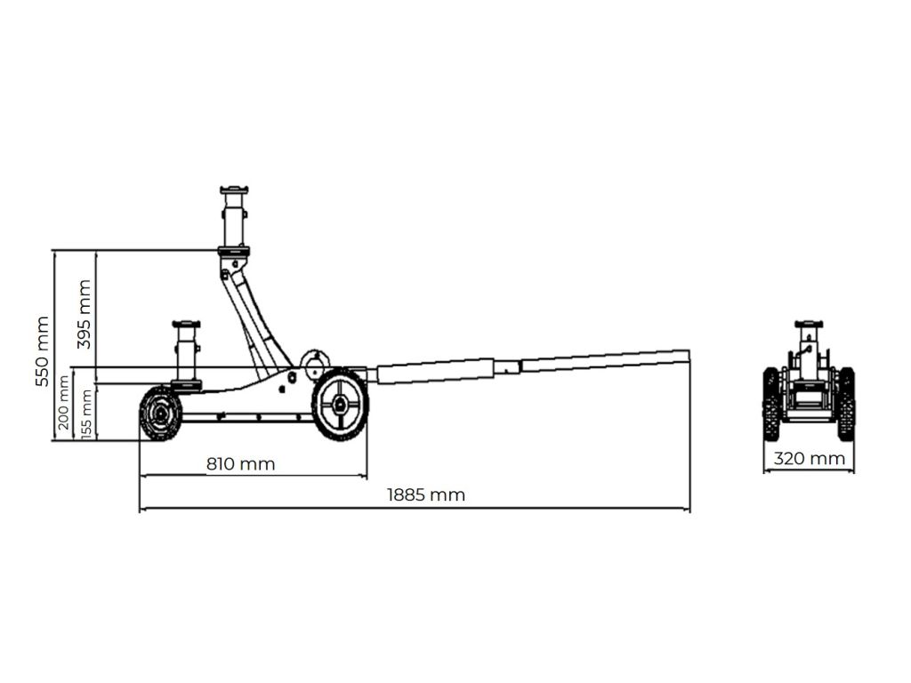 Підйомна штанга домкрата має довжину 1150 мм. Діапазон підйому без подовжувача - 155-550 мм, з подовжувачем - 285-685 мм. При піднятій підйомній підкладці забезпечується висота від 315 до 710 мм. Компактний розмір і міцна конструкція домкрата гарантують зручність транспортування і зберігання та надійну, довготривалу службу. Завдяки гідравлічній системі підйом відбувається плавно і без надмірних зусиль. Для збереження функціональності пристрою рекомендовано використовувати гідравлічне мастило ISO VG46 (HLP46). Такий домкрат гідравлічний купити за вигідною ціною можна на сайті офіційного постачальника виробника в Україні KMA.UA.
