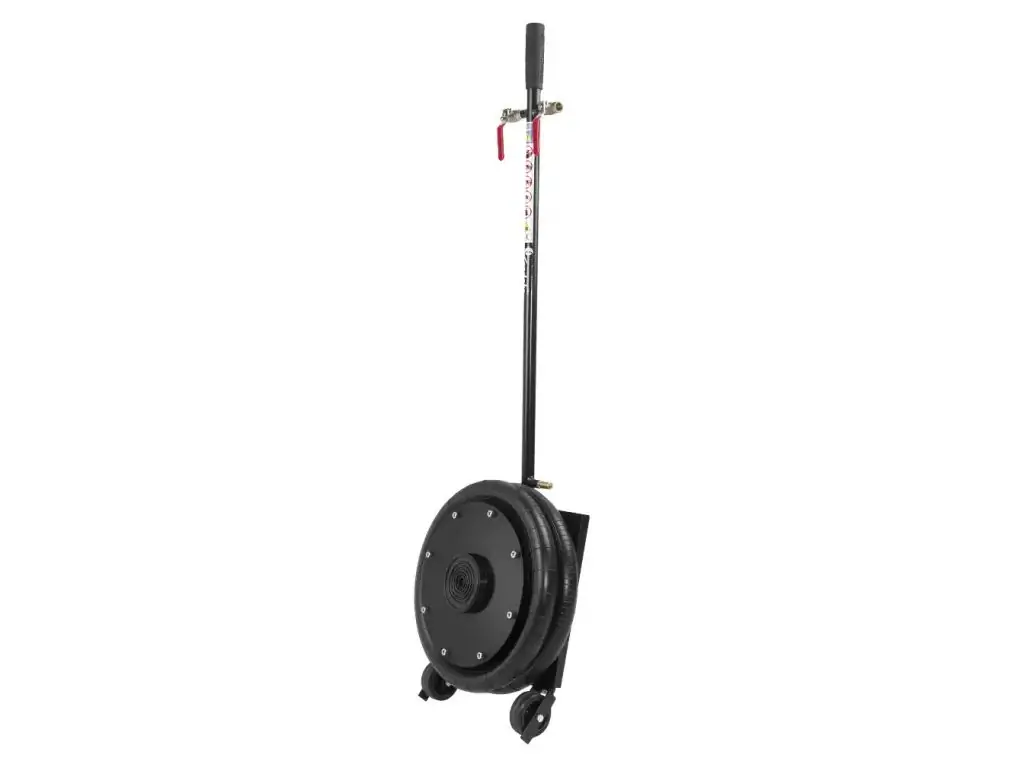 Домкрат працює при тиску 6-8 Бар, для захисту від перевищення тиску є запобіжний клапан. Вхідний і вихідний клапани забезпечують ідеальну герметичність навіть при від’єднанні шланга стисненого повітря. Завдяки міцним колесам і посиленій ручці цей пневматичний подушковий домкрат можна легко і швидко позиціонувати під авто.