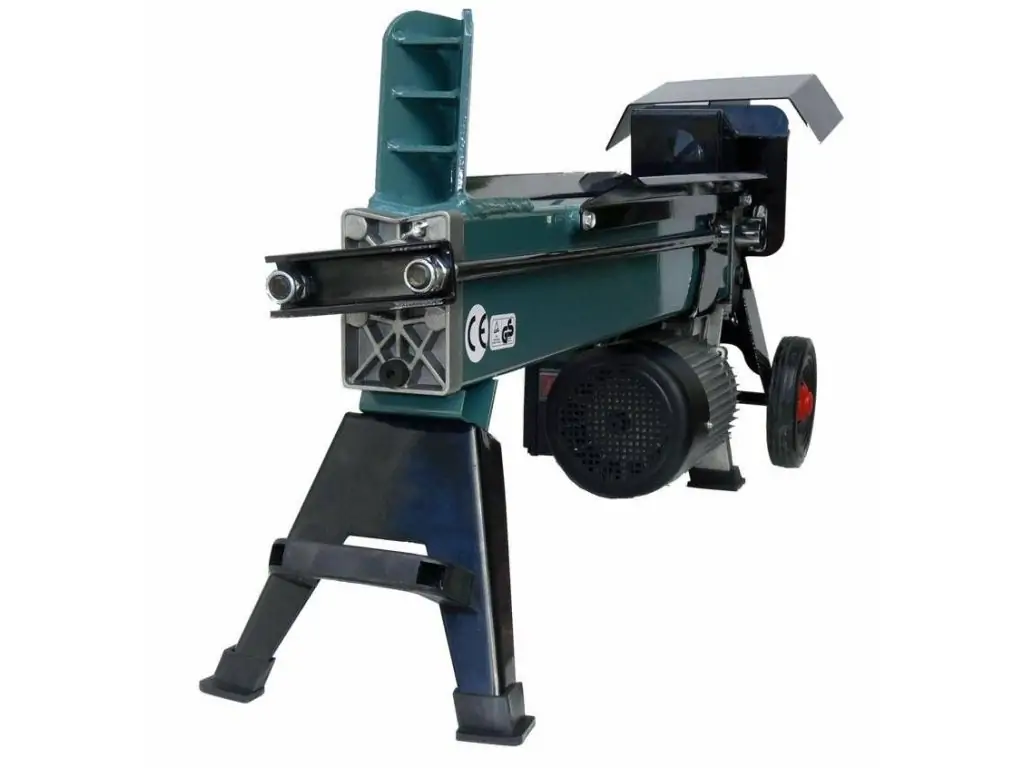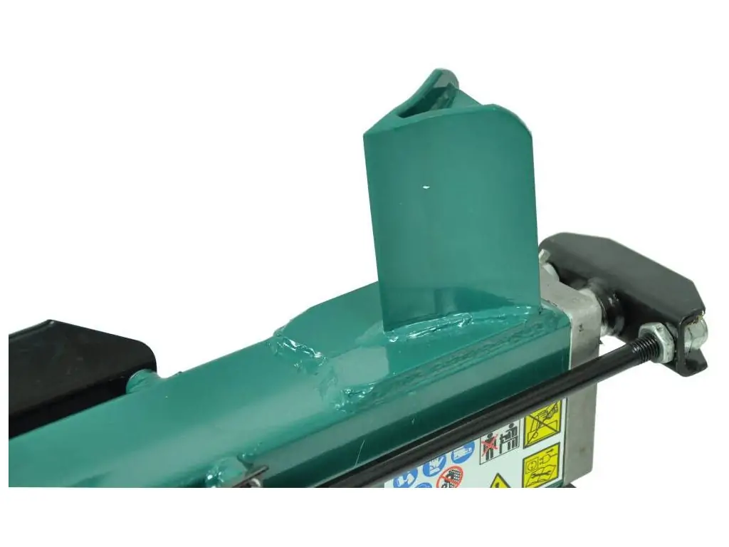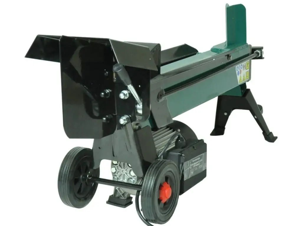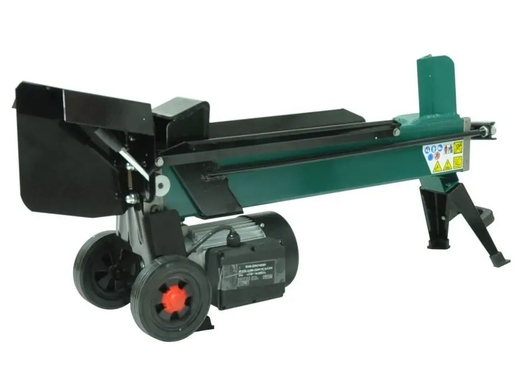 Запускається в роботу за допомогою розміщеної на корпусі кнопки. Керування гідравлічним циліндром здійснюється за допомогою важеля в задній частині дровокола. Міцний двоспицевий клин швидко розколює колоду на 2 частини. Час повного циклу становить 10 с. Для безпеки оператора цей побутовий дровокол має дворучну систему керування і захисний металевий кожух.