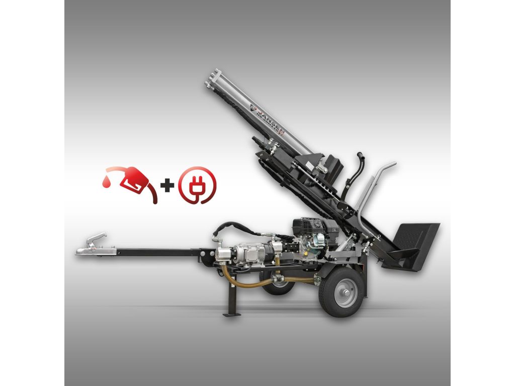 Однією з видатних особливостей Jansen HS-20H110K-V2 є можливість вибору з двох різних типів приводів. Потужний бензиновий двигун KOHLER дозволяє використовувати дровокол у віддалених районах без доступу до електроенергії, тоді як 400-вольтний електродвигун потужністю 2,2 кВт пропонує екологічно чистий, тихий варіант для використання в житлових районах. Ця гнучкість робить Jansen HS-20H110K-V2 надзвичайно універсальним.