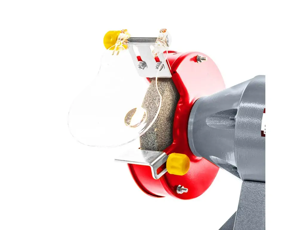 Литий чавунний корпус, виконаний у промисловому дизайні, мінімізує вібрації і підтримує стабільність робочого процесу. Захисний екран з плексигласу з функцією лупи убезпечує оператора від іскор і викиду стружки, забезпечуючи оптимальну видимість робочої зони. Для зручності фіксації заготовок є регульовані опорні підставки. Цей дводисковий шліфувальний верстат буде ефективним як у власному гаражі, так і у невеликій майстерні.