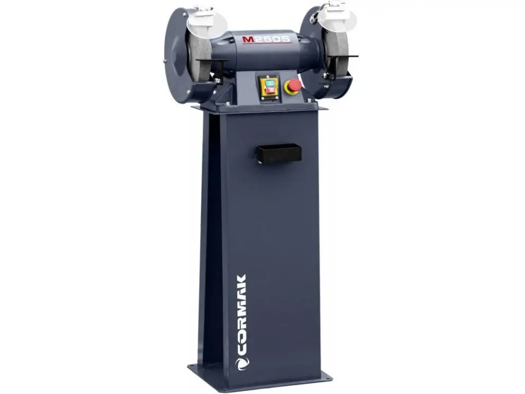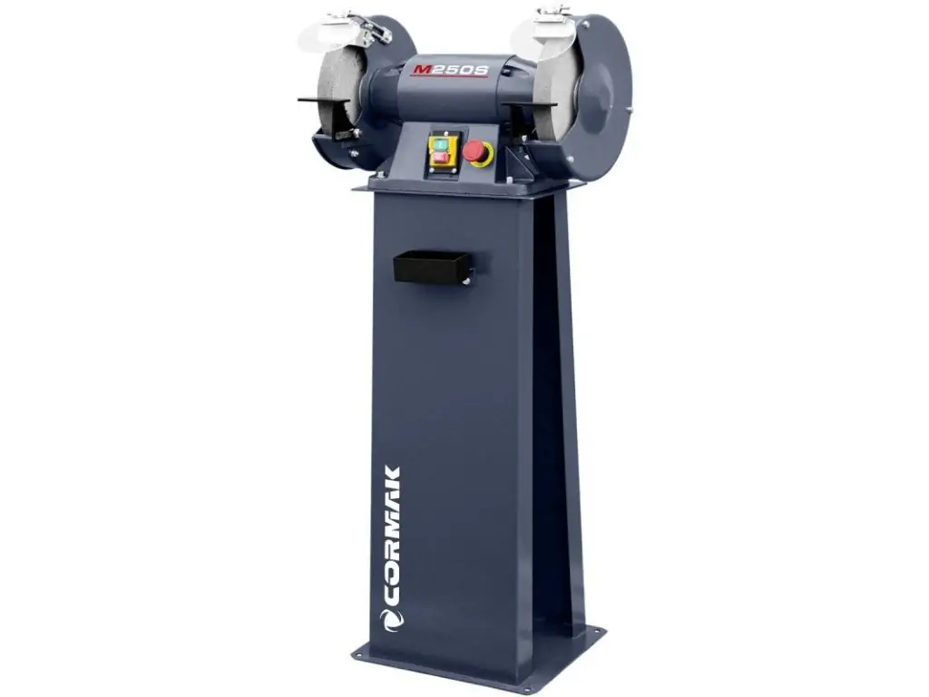 Дводискова шліфувальна машина CORMAK M250S з підставкою використовується для очищення, шліфування і полірування металевих заготовок. Завдяки оснащенню 2 дисками діаметром 250 мм, що мають абразивність К36 і К60, можна швидко змінювати вид обробки без потреби переналаштувань. Двигун потужністю 900 Вт (380 В) з високим крутним моментом розвиває швидкість 2960 об/хв.