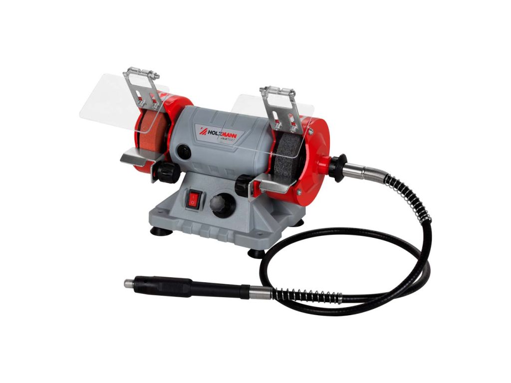 Точильно-шліфувальний верстат Holzmann DSM75SET_230V - це багатофункціональний настільний пристрій, який дає змогу виконувати шліфування, заточування, гравірування та ряд інших операцій за рахунок двох кругів, полірувального і шліфувального, та гнучкого валу зі 110 насадками. Працює на базі асинхронного двигуна потужністю 110 Вт (230 В) та зі швидкістю обертання 9900 об/хв.