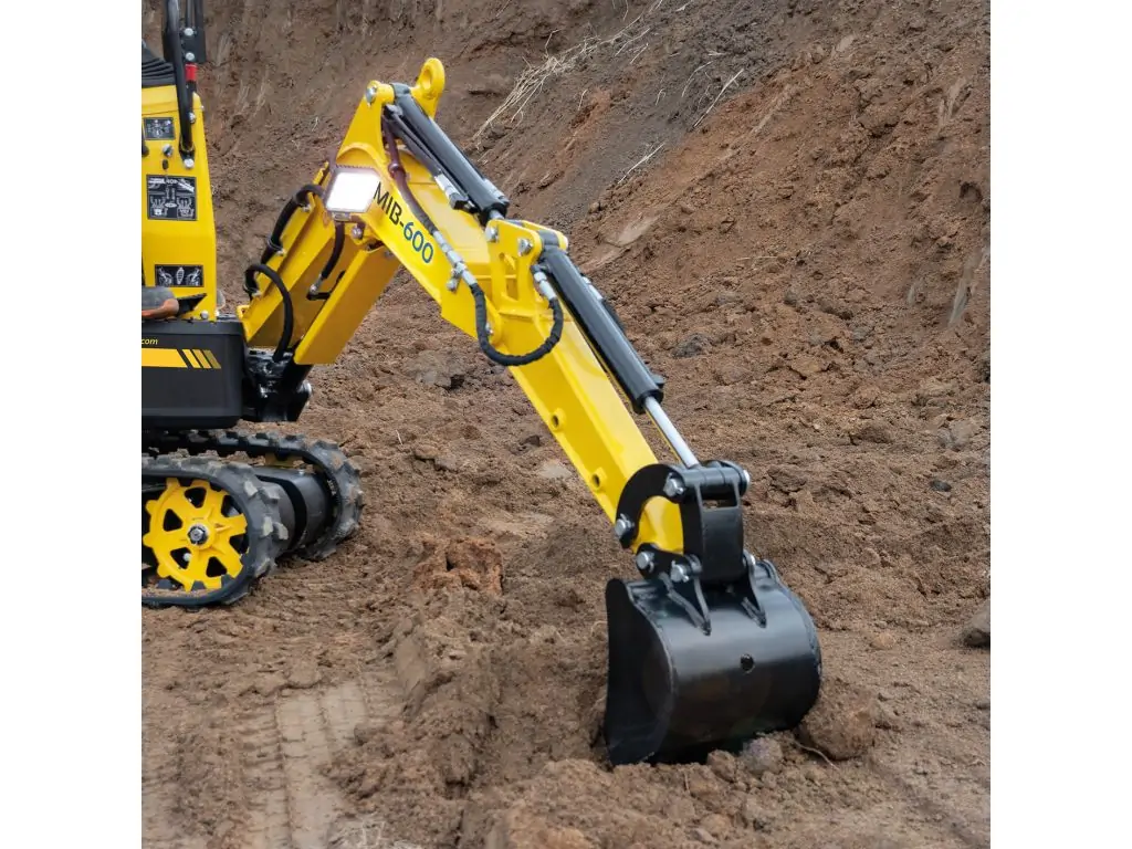 Міні-екскаватор BAMATO MIB-600 оснащений різноманітними практичними функціями, які роблять його універсальним, компактним і зручним у використанні міні-екскаватором. Незалежно від того, чи потрібно вам виконувати роботи в обмеженому просторі, наприклад, в будівлях, або невеликі завдання в приватному саду, де немає місця для великих машин, MIB-600 завжди буде поруч з вами як цінний помічник. Наш універсал особливо добре підходить для робіт навколо вашого будинку, наприклад, для дренажу. Завдяки можливості повороту стріли на 70° вліво і вправо ви можете працювати точно і ефективно, а робоча зона MIB-600 оснащена нековзним і ударостійким гумовим покриттям для забезпечення надійної опори. Міні-екскаватор також вражає своєю надзвичайно вузькою конструкцією і компактними розмірами, які дозволяють легко маневрувати ним через вузькі ворота і доріжки до робочого майданчика.