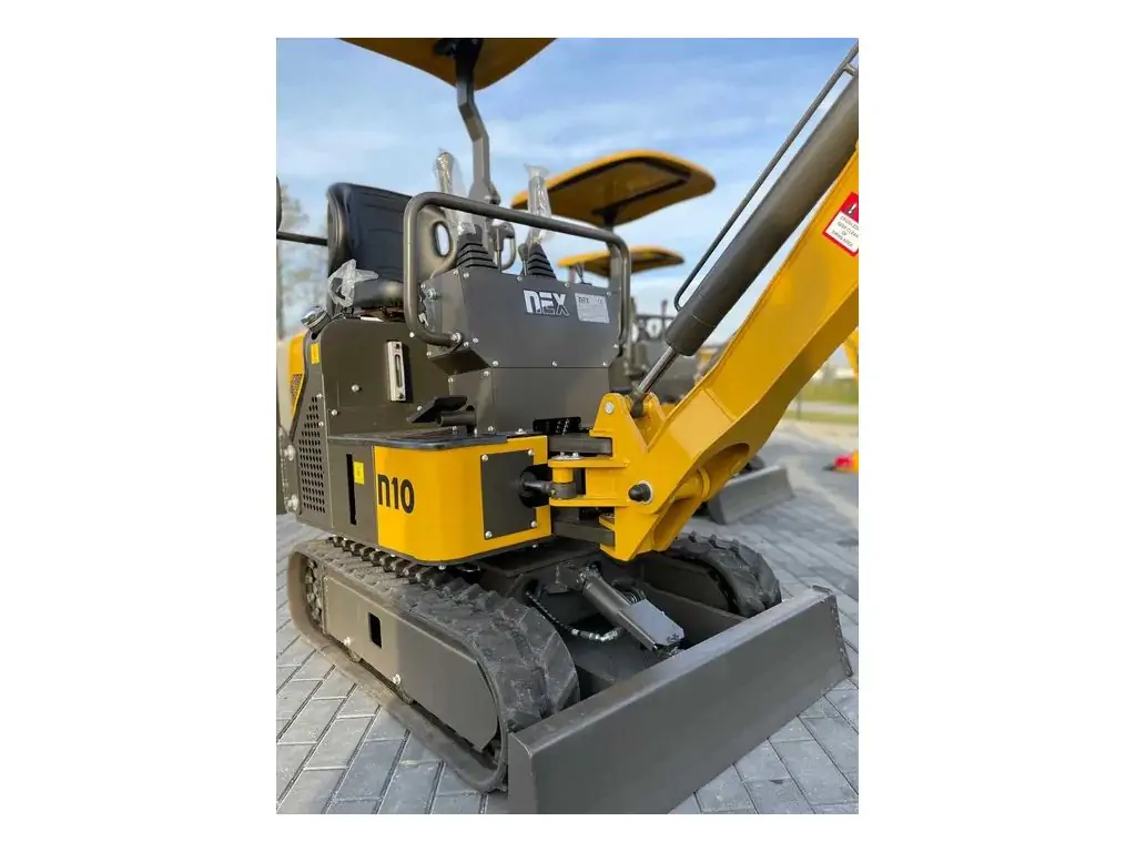 Міні-екскаватор дизельний NEX N10d - це компактна і маневрена спецтехніка для земляних робіт в обмеженому просторі, яка поєднує невеликі габарити та достатню для широкого спектра завдань продуктивність. Гумові гусениці мінімізують тиск на грунт і гарантують відмінну прохідність на всіх рельєфах. Поворотний на 360° корпус дозволяє копати в усіх напрямках, а поворотна у двох напрямках стріла додасть комфорту будь-якій роботі. Дизельний двигун KOOP потужністю 7 кВт / 10к.с. забезпечує довготривалу роботу зі стабільною продуктивністю. Попри компактні розміри, екскаватор чудово копає на глибину до 2 м.