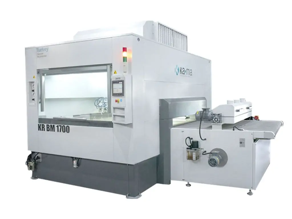 У машині для фарбування KR BM-1700 пил з продукту видаляється щіткою і повітряними форсунками. Статична електрика, що утворилася на виробі в результаті тертя, нейтралізується антистатичним стрижнем. Інтелектуальна система повітряного струменя, яка визначає, що продукт доставлений, починає дуття і зупиняється, коли продукт проходить, економлячи при цьому енергію. Автоматичне регулювання висоти полегшує роботу користувача.