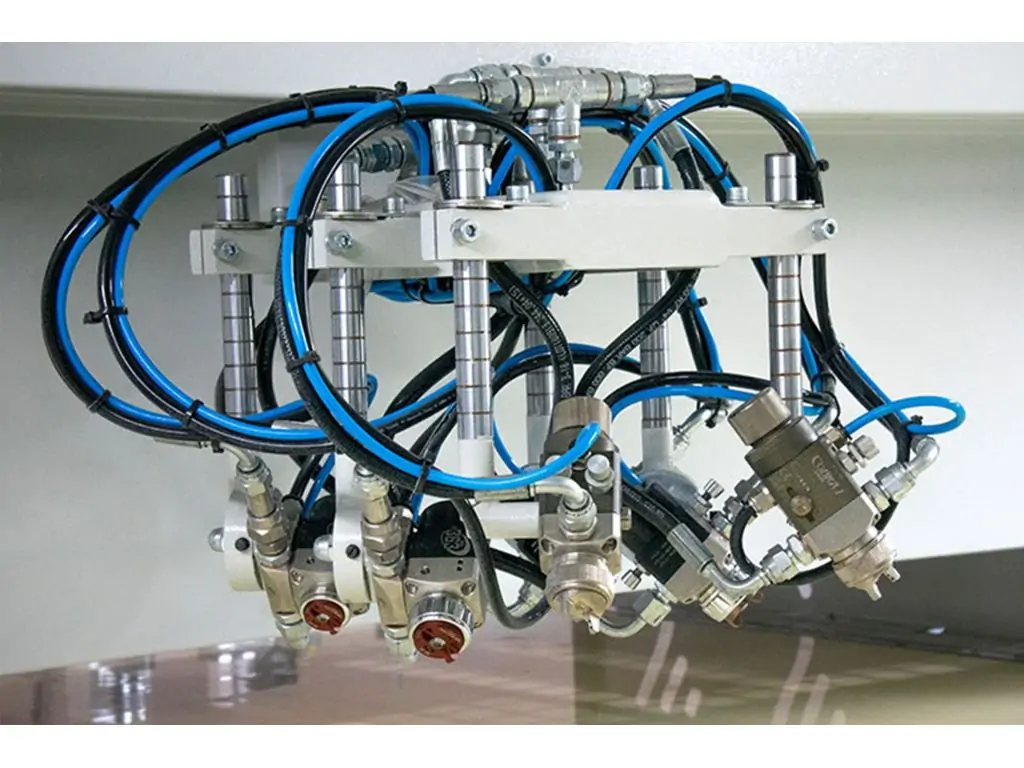8 додаткових фарборозпилювачів всього 12 фарбопультів і 2 додаткових фарборозпилювальних насоси. Всього 3 фарборозпилювачі можуть бути підключені до машини. Це дозволяє швидко і легко переходити між 3 різними кольорами.