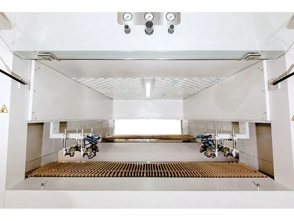 У машині для забарвлення дерева KR BM-1700 повітря, профільтроване за стандартом EU5, лінійно вдавлюється в шафу. Брудне повітря в камері пропускається через фільтр-гармошку і виштовхується назовні. Таким чином, внутрішній простір салону і вентиляційні канали залишаються чистими.