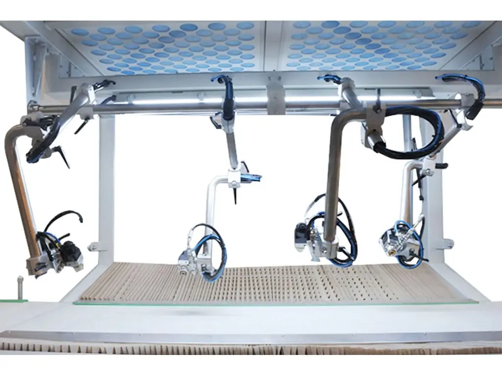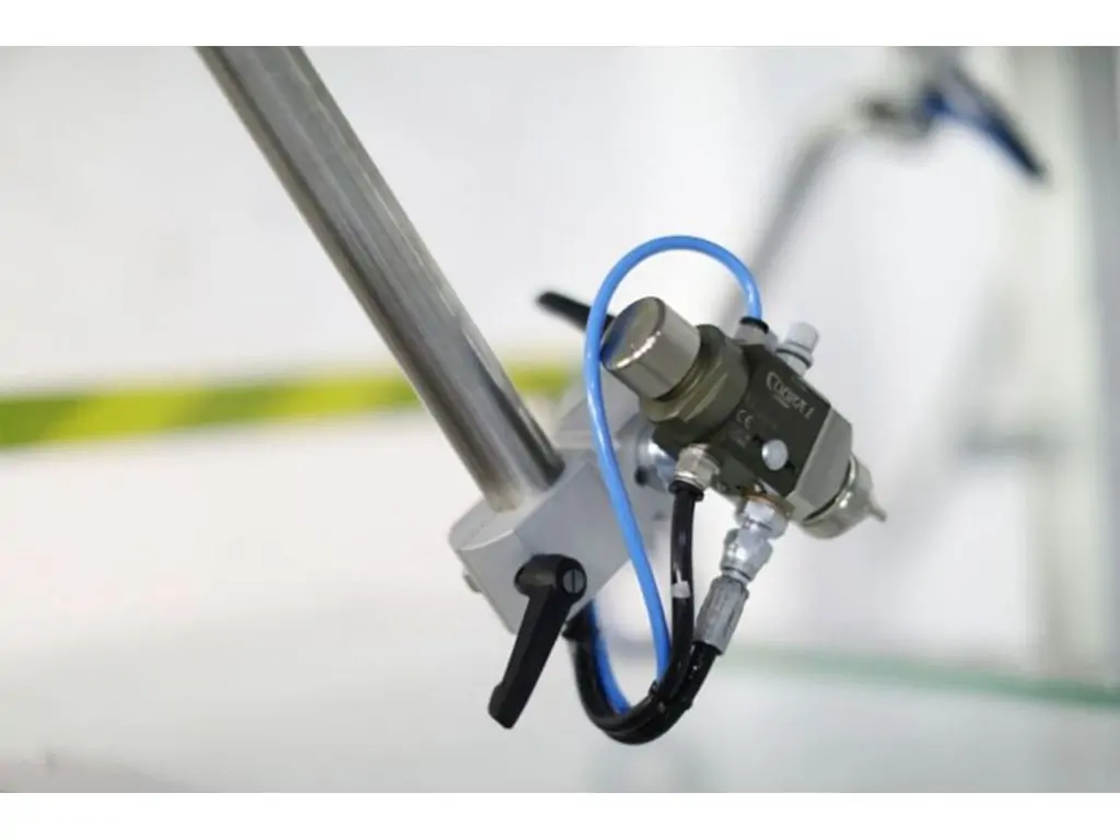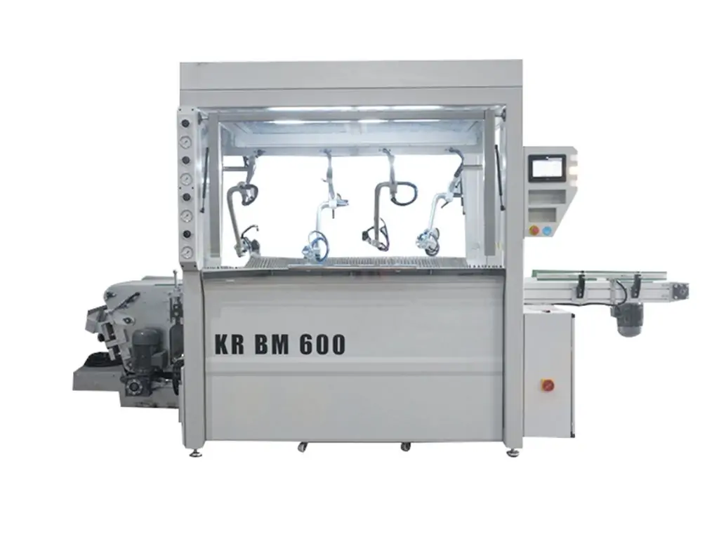 Автоматична машина для забарвлення профілю KR BM 600 має 1 мембранний насос і 4 автоматичних пістолета-розпилювача низького тиску з регульованими положеннями, які входять в стандартну комплектацію.