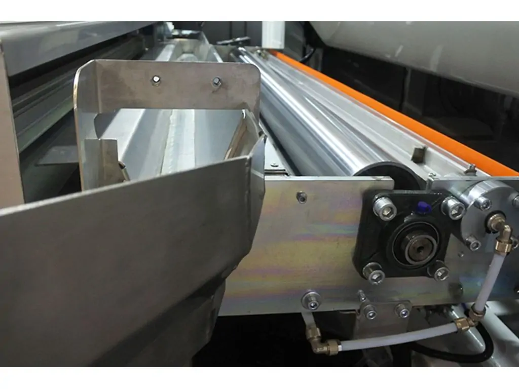 Стрічка також оснащена автоматичним центрирувальним пристроєм, що гарантує правильне позиціонування конвеєрної стрічки на високоточній каретці.