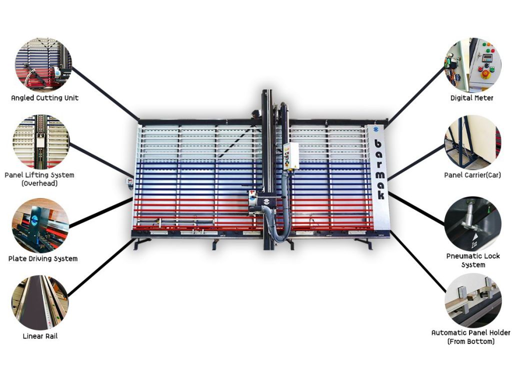 Вертикальний форматно-розкрійний верстат Barmak BM-M6000 призначений для розкрою облицьованих шпоном дсп і мдф, облицьованої меламіном ДСП, пластику, щитів з масиву деревини, комбінованих матеріалів