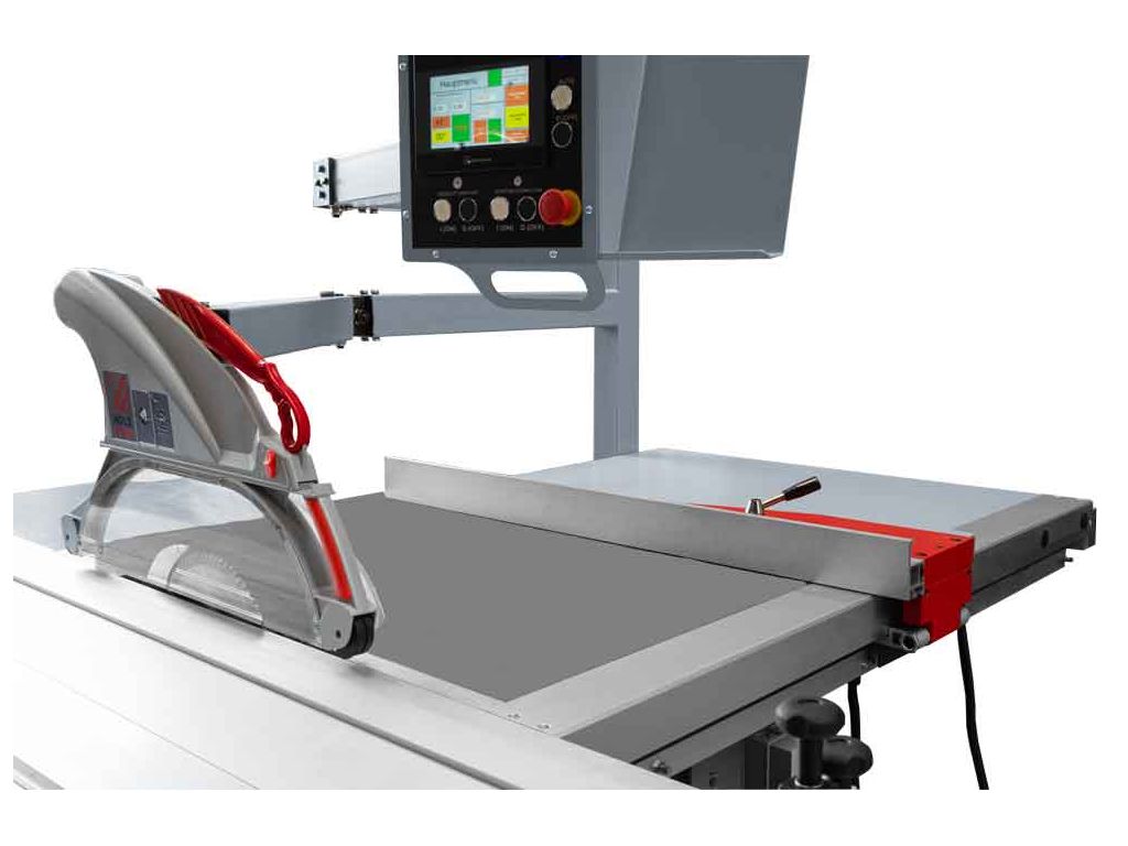 Ще однією перевагою моделі є високоточне регулювання паралельної лінійки за допомогою електродвигуна з налаштуванням параметрів на рідкокристалічному дисплеї. Масивна, жорстка станина підтримує стабільність обробки і забезпечує її високу точність. Цей верстат для форматного розкрою буде ефективним на меблевих і столярних виробництвах різного типу.